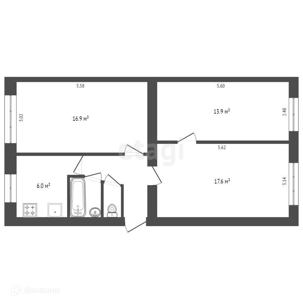 Общая площадь 62.3 м2