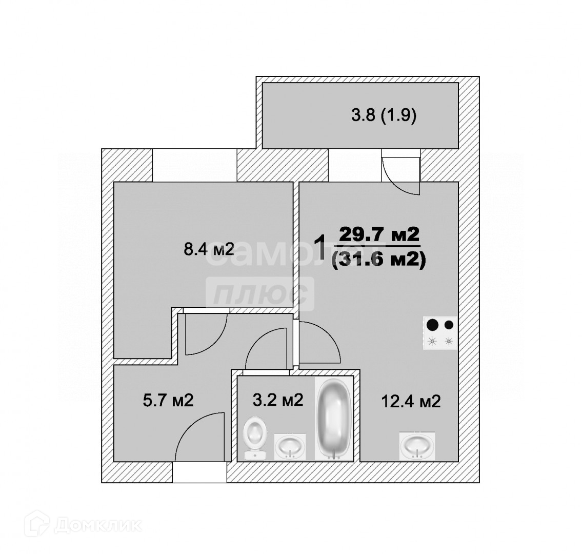 Общая площадь 31.6 м2