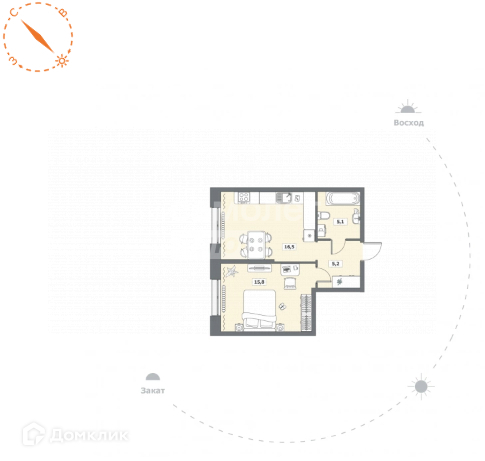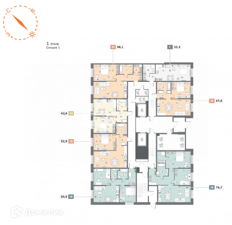Общая площадь 42.6 м2