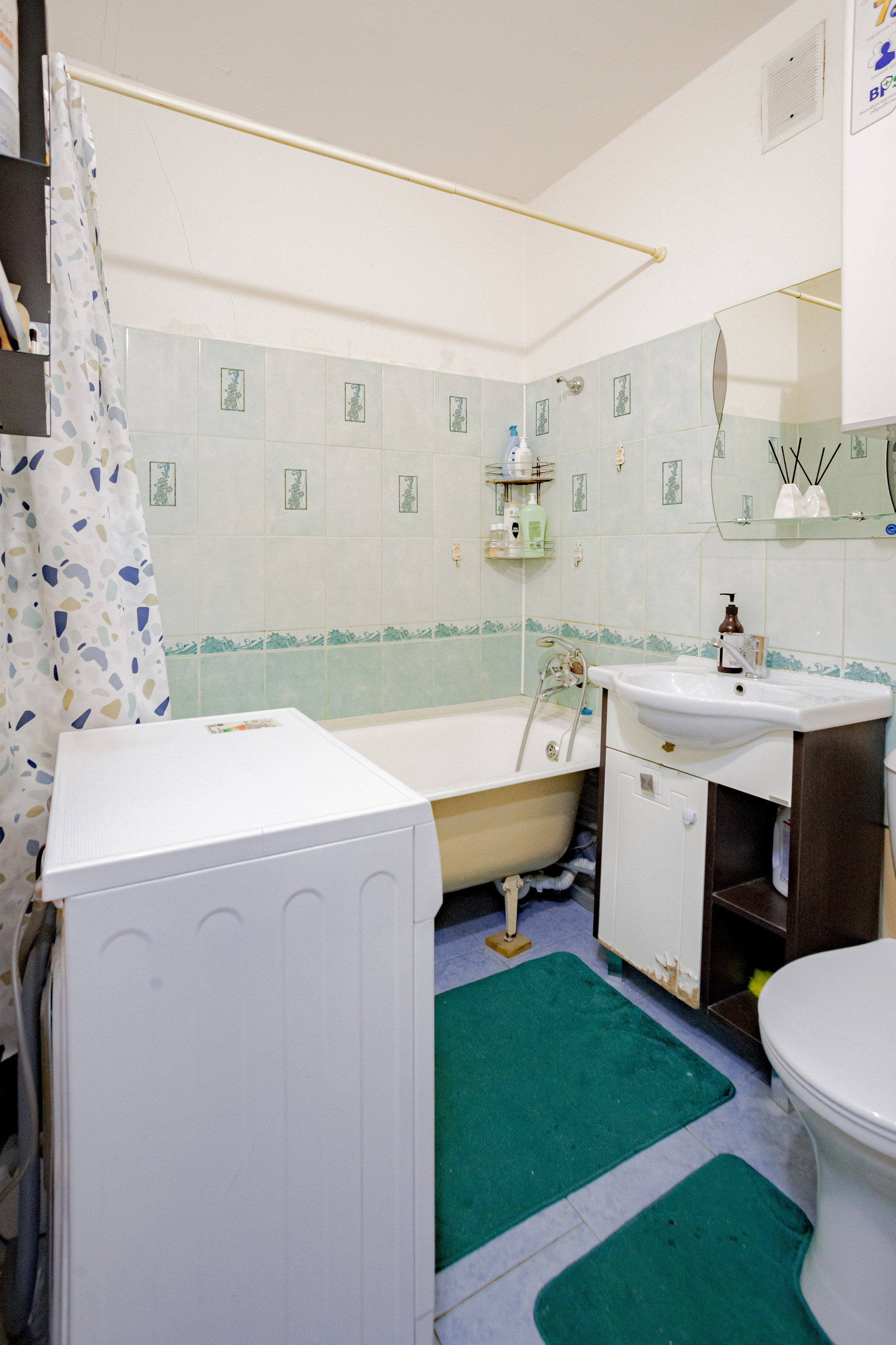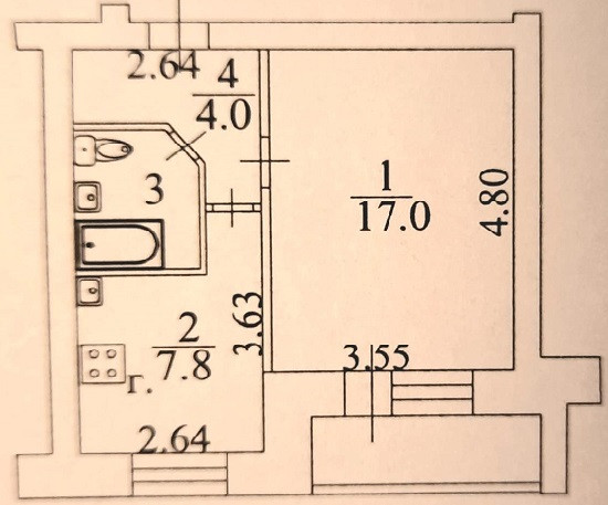 Санузел совмещённый, что позволяет более эффективно использовать пространство.