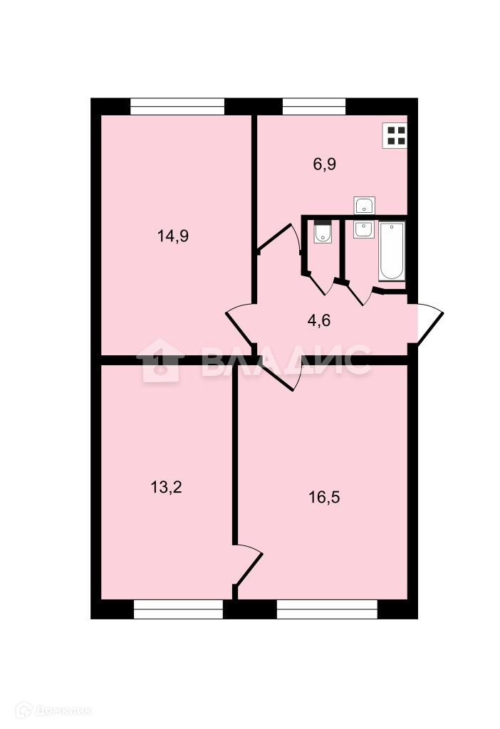Общая площадь квартиры составляет 59 кв. м, жилая площадь — 45 кв. м. Просторная кухня площадью 7 кв. м позволит с комфортом разместиться всем членам семьи и гостям. Все комнаты изолированные. Окна выходят на улицу.