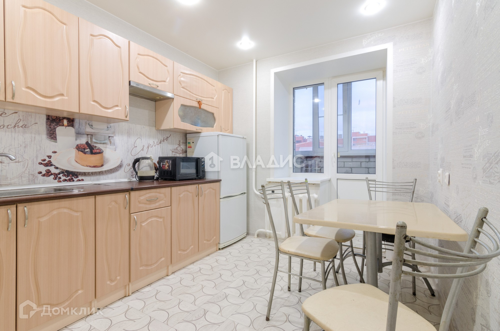 - квадратная кухня с выходом на застекленную лоджию;