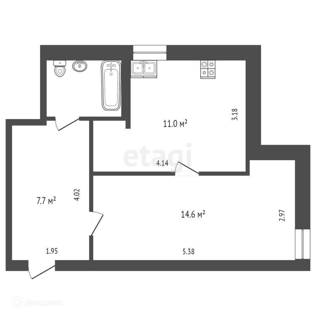 Общая площадь 36.8 м2