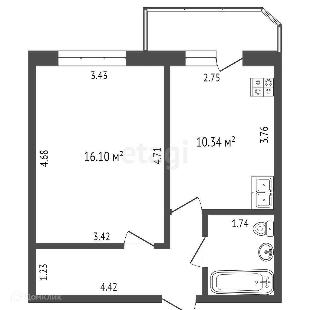 Общая площадь 36.4 м2