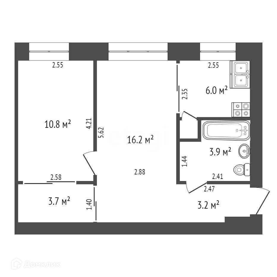 Общая площадь 44.3 м2