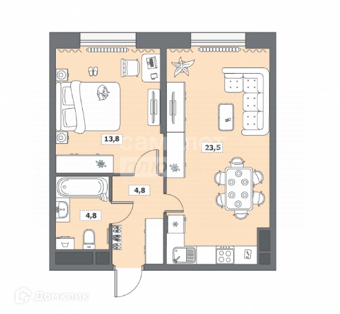 Жилая площадь 13.8 м2