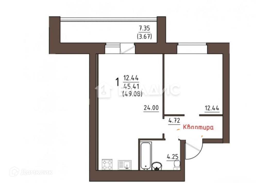 Балкон, лоджия 1 лоджия