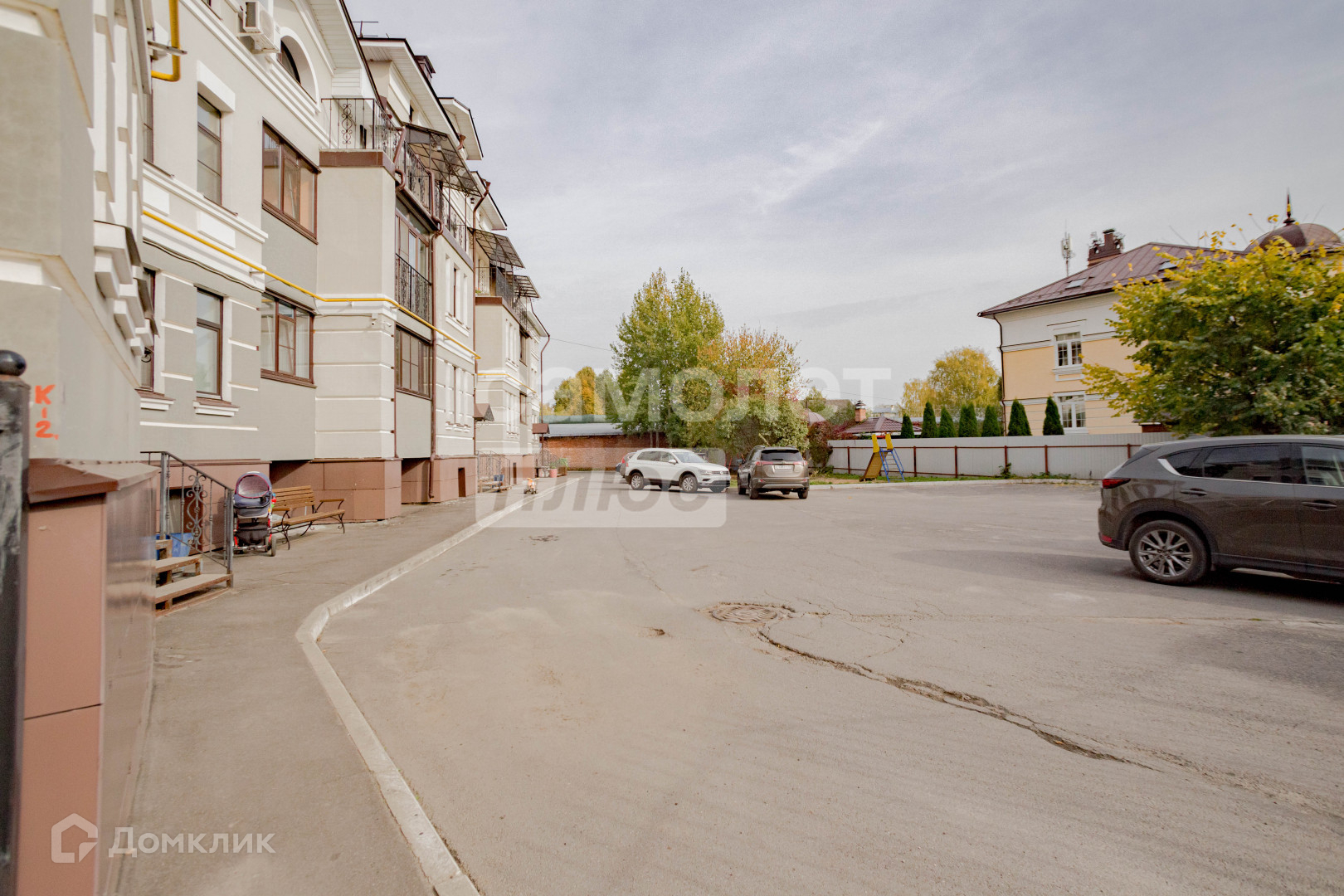 Двор: Своя закрытая огороженная территория, огромное количество парковочных мест, много зелени.