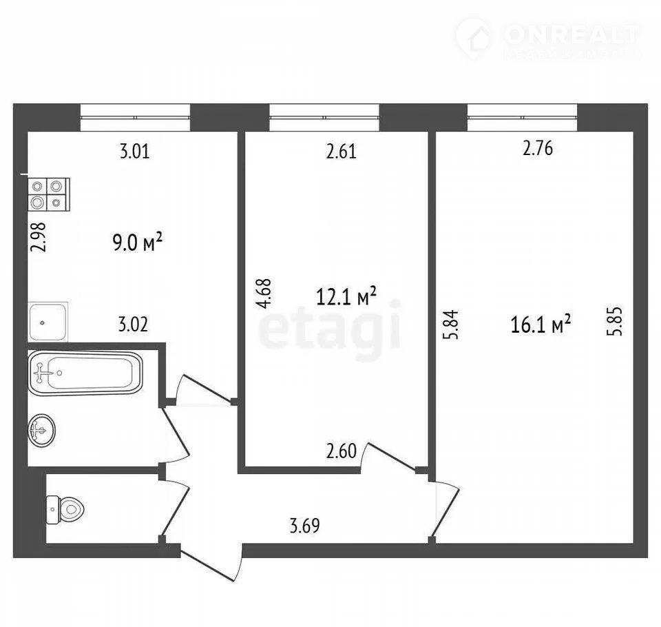 Площадь кухни 9 м2