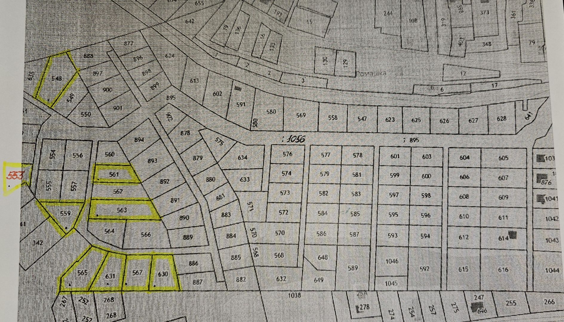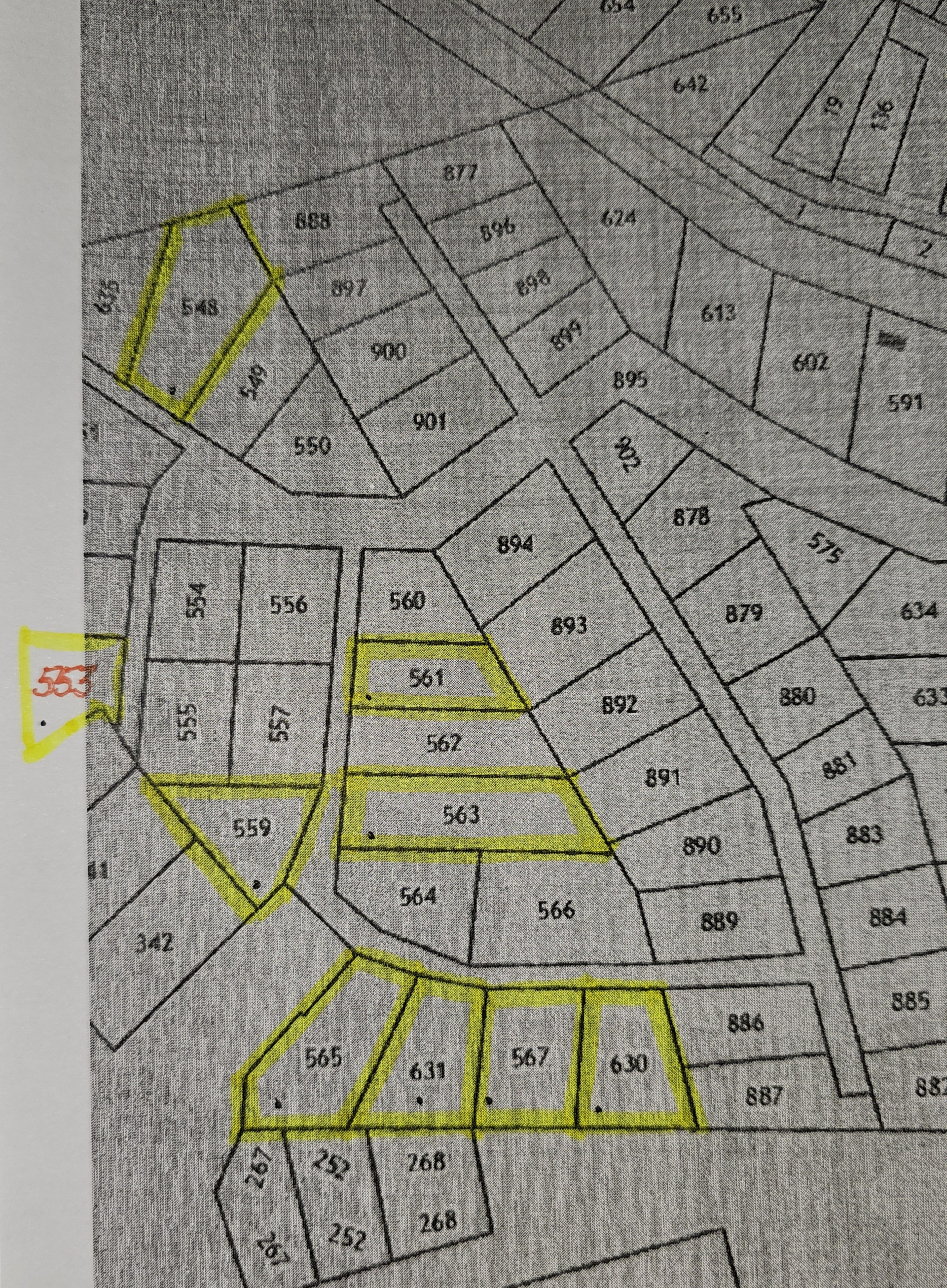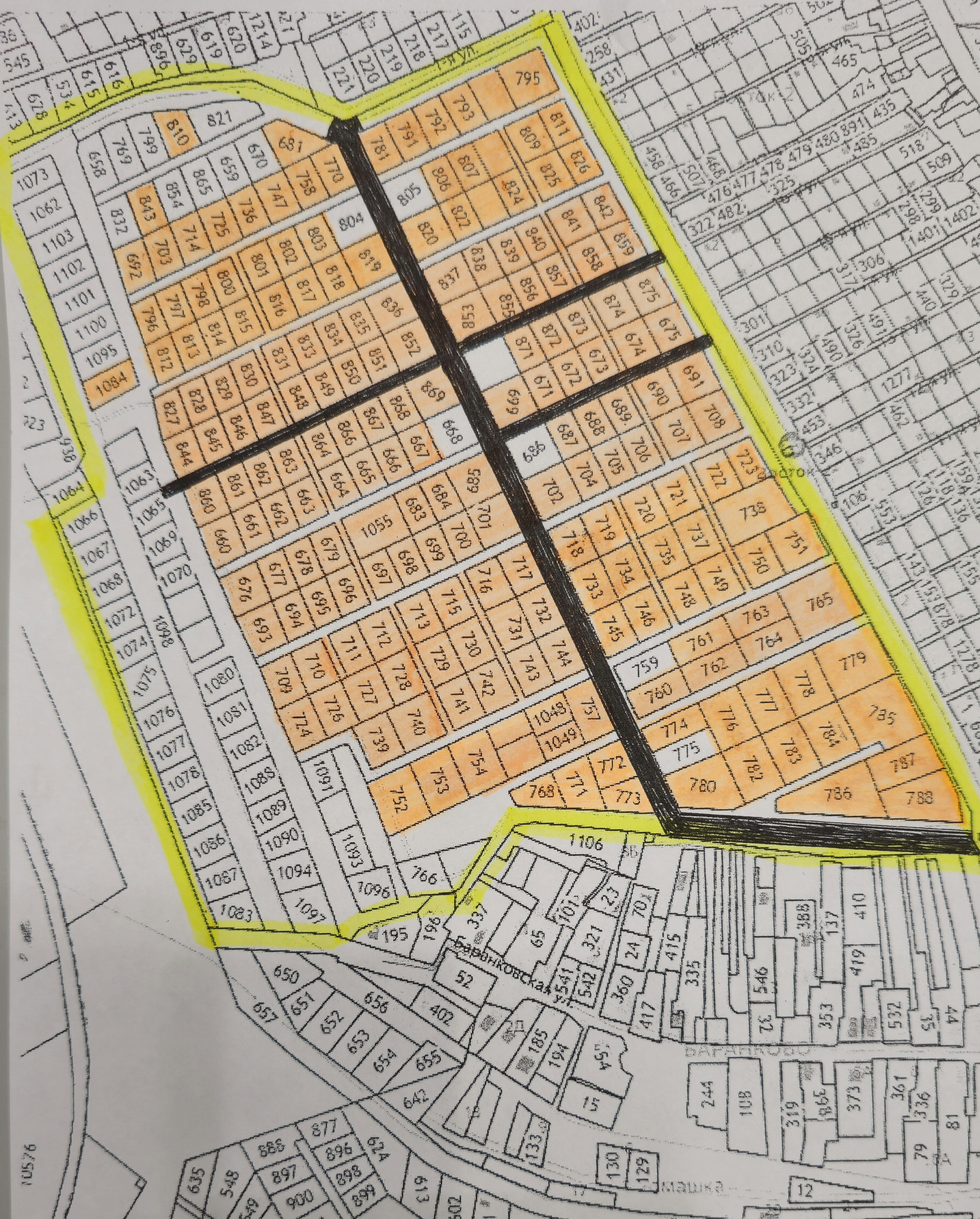 (На первом плане свободные земельные участки-белым цветом, на третьем и четвертом желтым цветом -свободные участки)