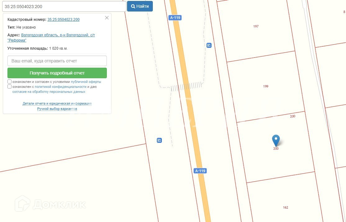 Площадь участка 20 сот.