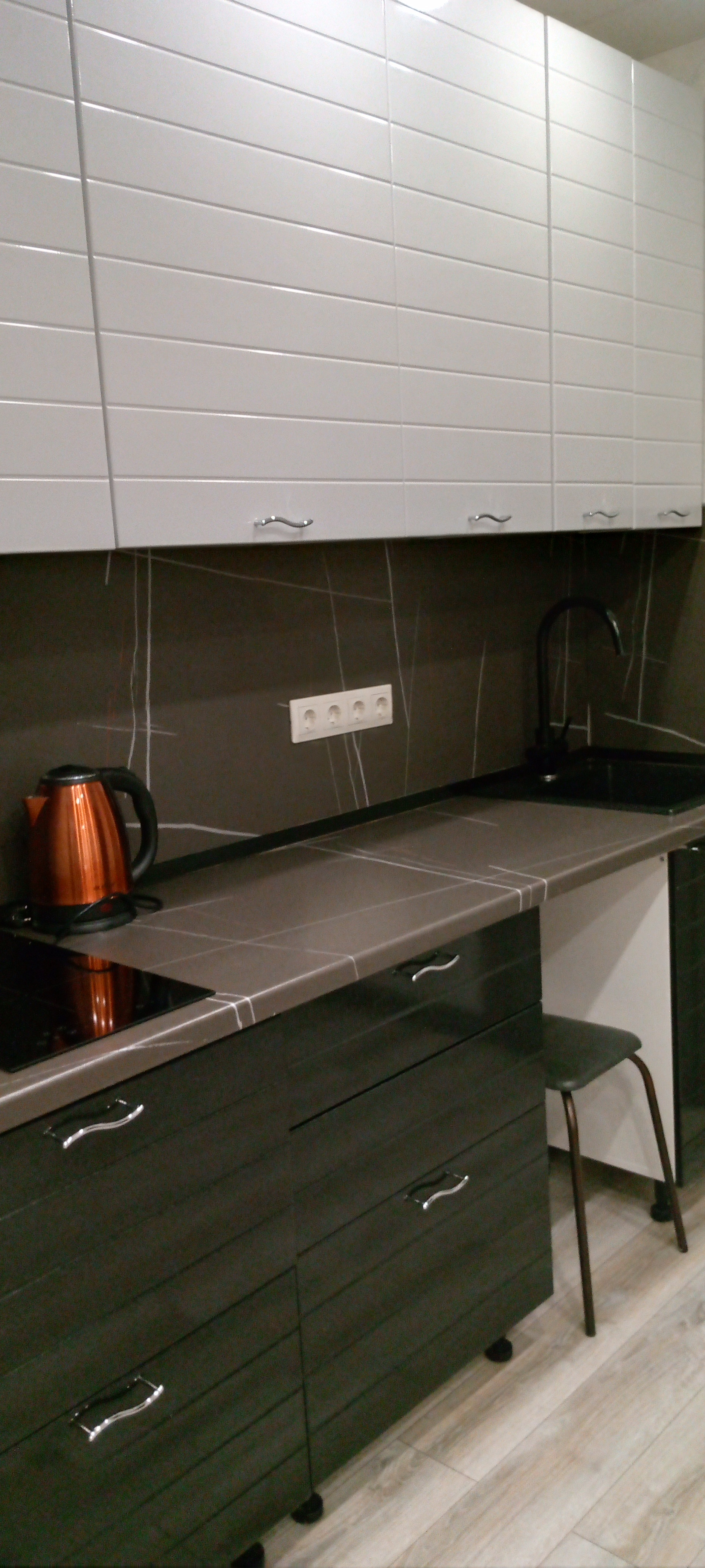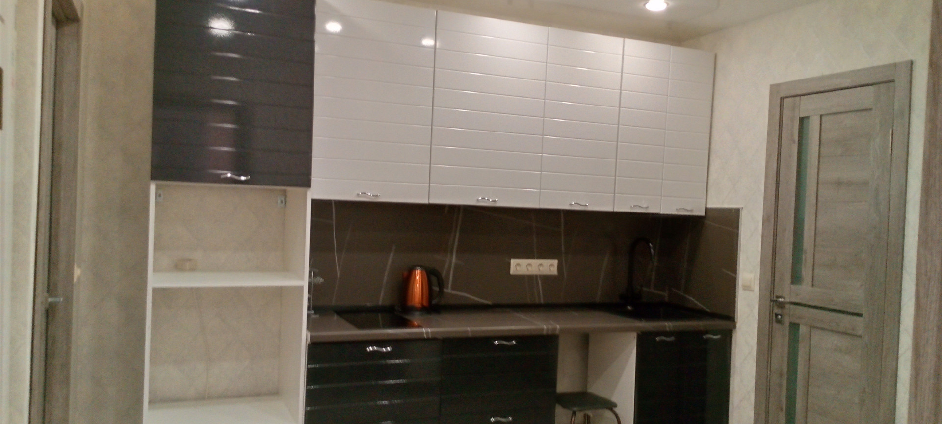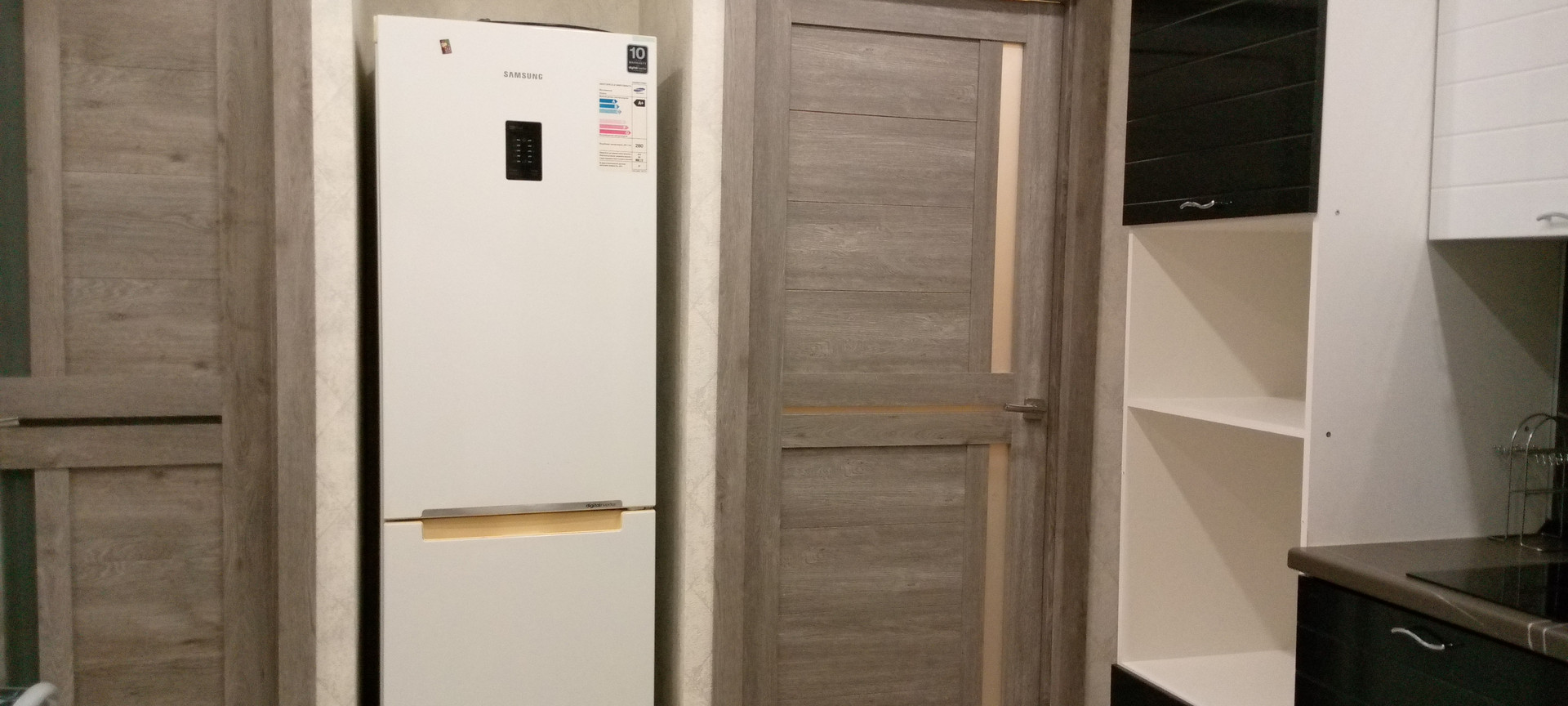 Из бытовых приборов: электрический чайник, индукционная плита, новый кондиционер, телевизор, холодильник большой, стиральная машина.