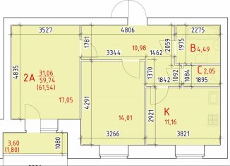Продажа двухкомнатной квартиры, 61.5 м2
