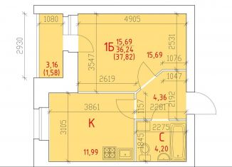 Общая площадь: 37 м2
