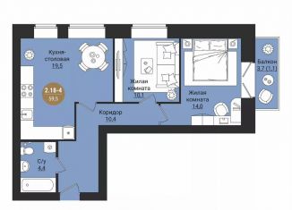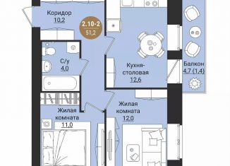 Двухкомнатная квартира на продажу, 51.2 м2