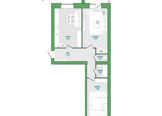 Двухкомнатная квартира на продажу, 55.4 м2, улица Годовикова, 19