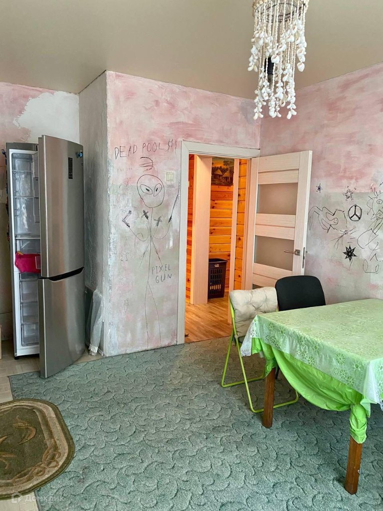 Материал дома - бетон (качество СССР). Дом внутри очень уютный, сделан качественный ремонт (полы ламинат (33), на кухне плитка, стены обшиты имитацией бруса, полностью новые оборудованные с/у).