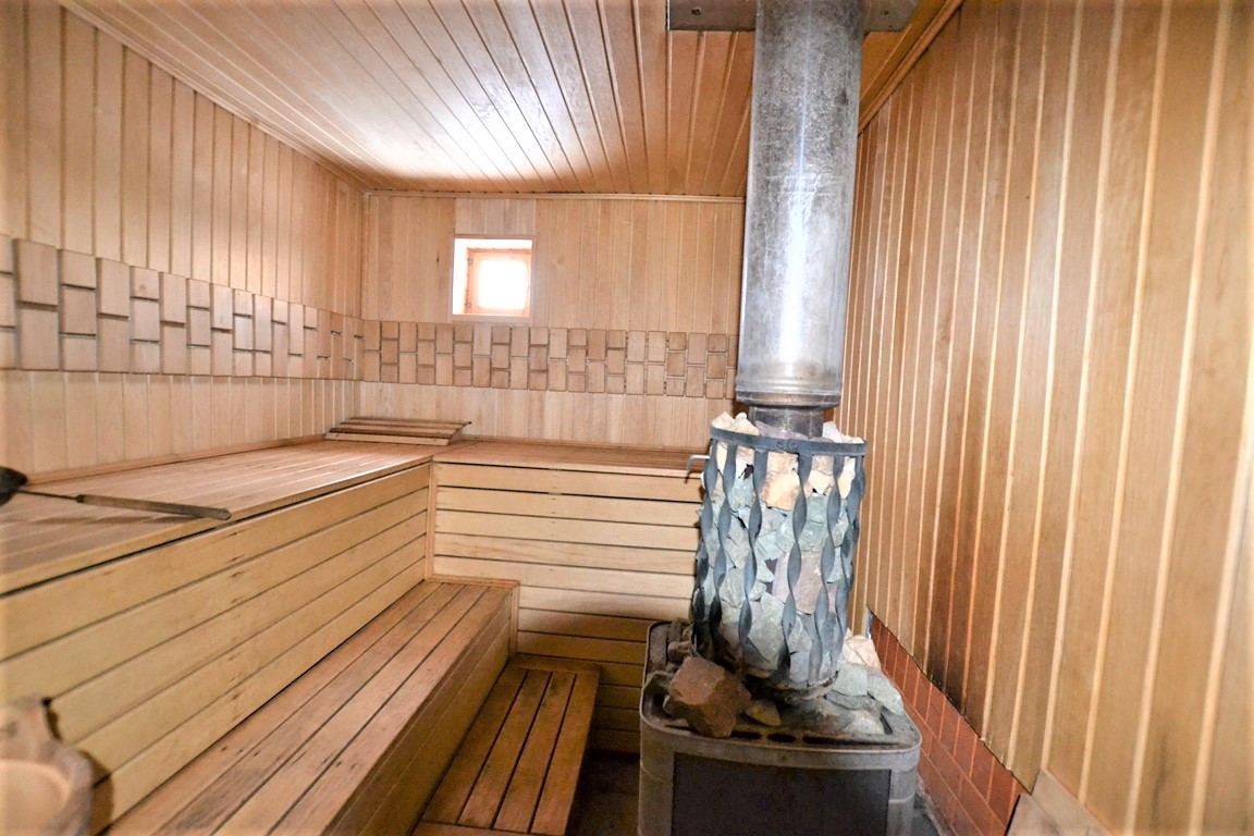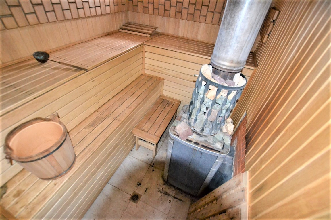 Баня из сруба 72 кв.м., бревно диаметром Ø 400мм, фундамент: монолитная плита. Крыша металлопрофиль. Окна пластиковые стеклопакеты. Планировка: жилая комната, комната отдыха, туалет, душевая, парная. В парной установлена Финская печь.