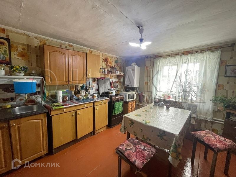     Жилой дом 1990года постройки из полубруса, обложен кирпичом, отопление -  газовый котел! и есть печь. Электричество-15КВт.