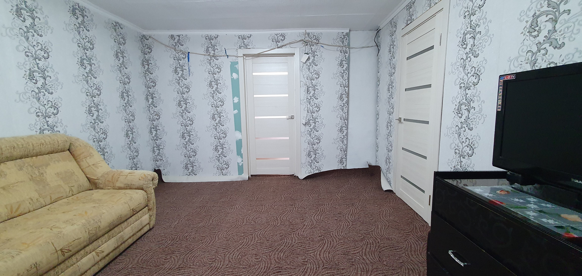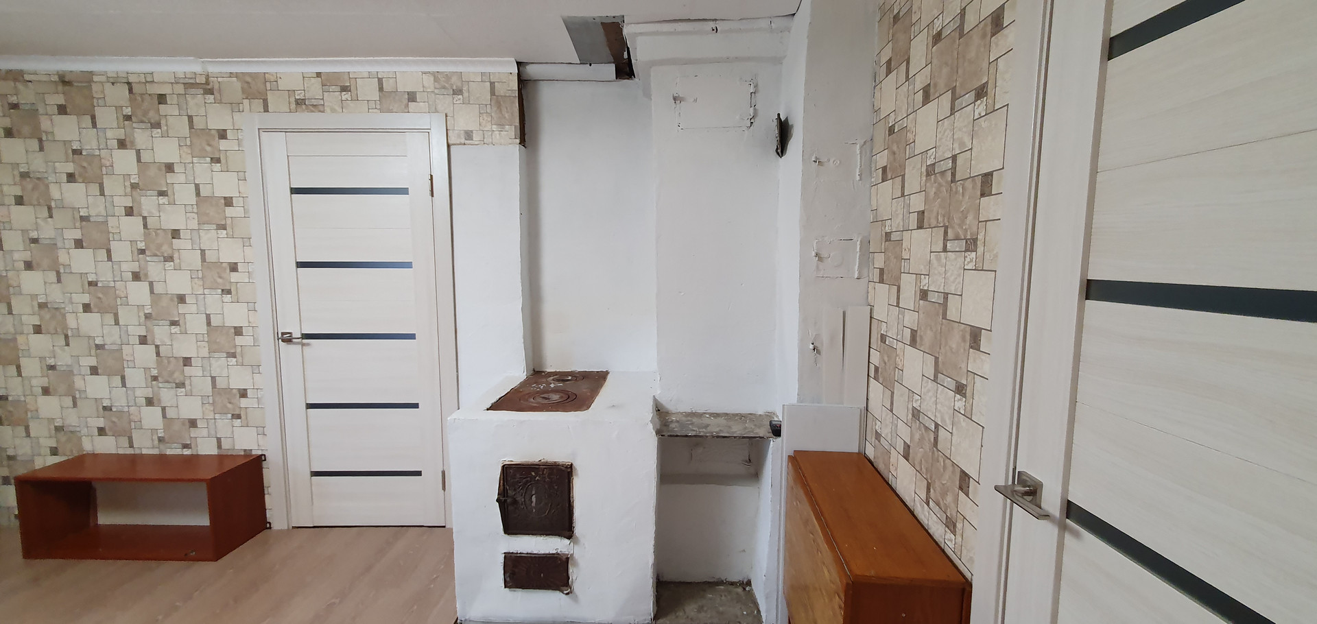 Полы: отсыпка керамзитом, утеплитель 100 мм, черновой пол, доска, ламинат (санузел, кухня-гостинная, прихожая), ковровое покрытие(комнаты)
