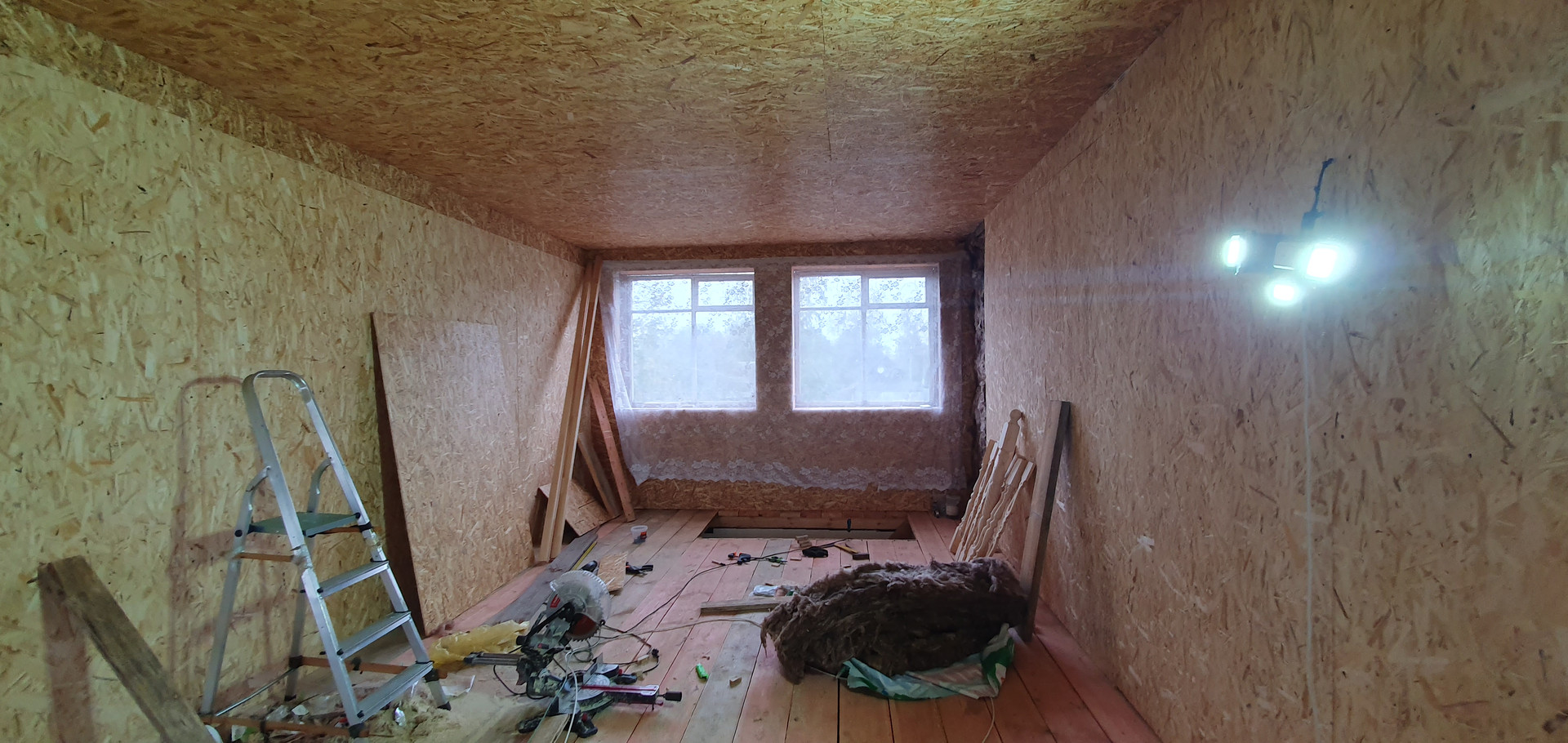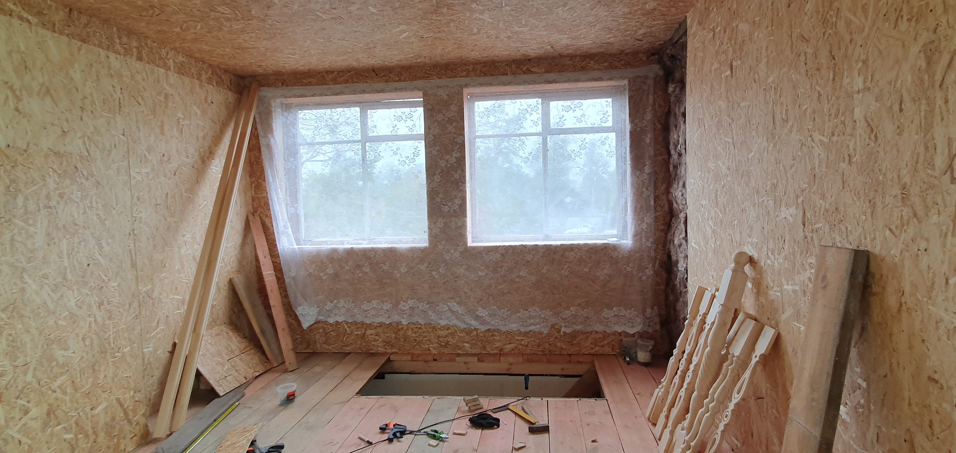 Второй этаж 42,4 кв.м. (не закончен ремонт), в зависимости от Вашей ситуации, его можно оставить единым пространством с разными зонами или разделить на несколько помещений ,наличие 4 окон позволяет реализовать оба варианта.