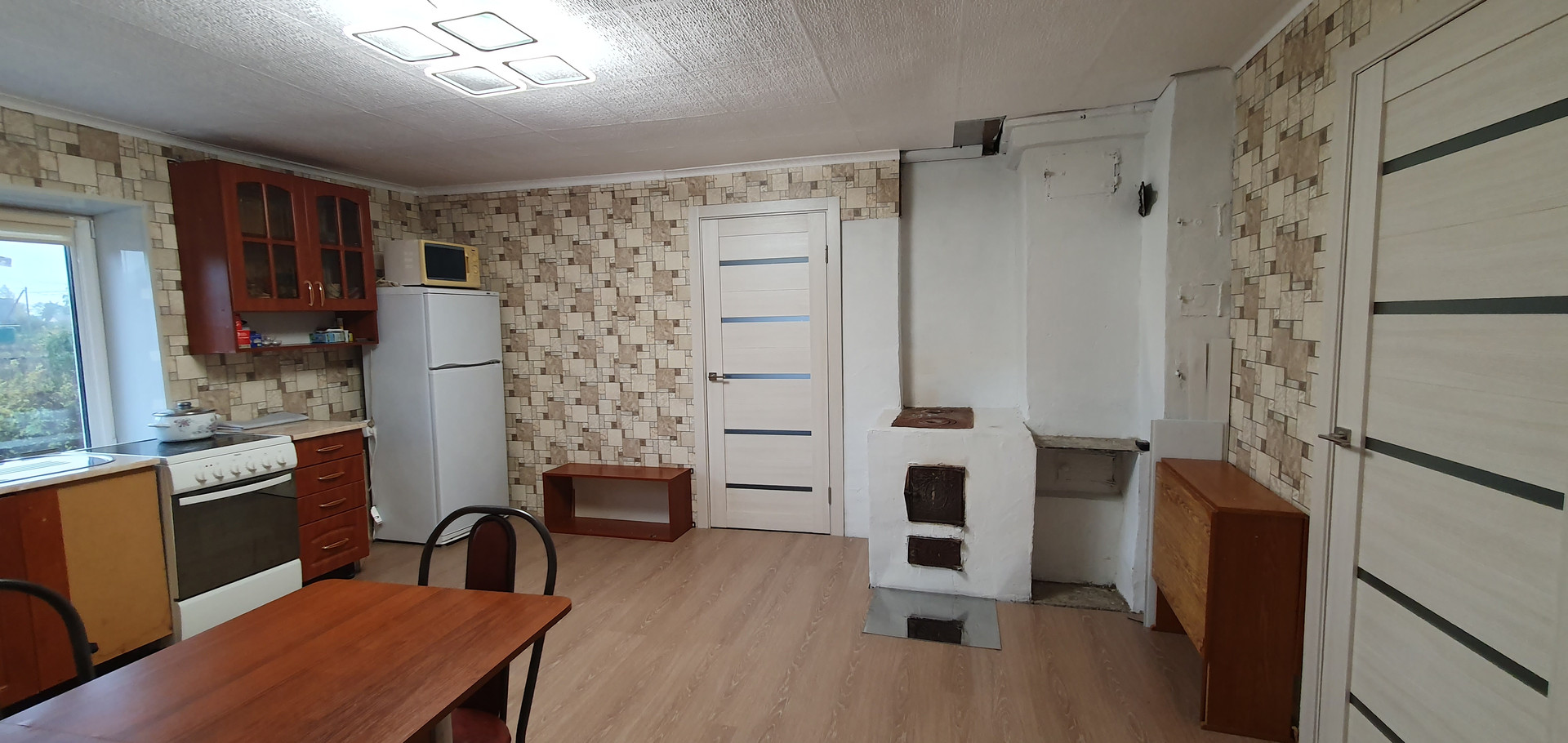 Коммуникации: холодная вода-скважина(насос), горячая вода-бойлер, канализация-септик,кольца, электричество-15 кВт, отопление-печь, конвекторы Электролюкс, обогреватели Теплэко( во всех помещениях). Печь-это сердце этого дома, он спроектирован таким образом, что печь выходит своей частью в каждое из помещений , таким образом можно экономить на отоплениии в холодное время года