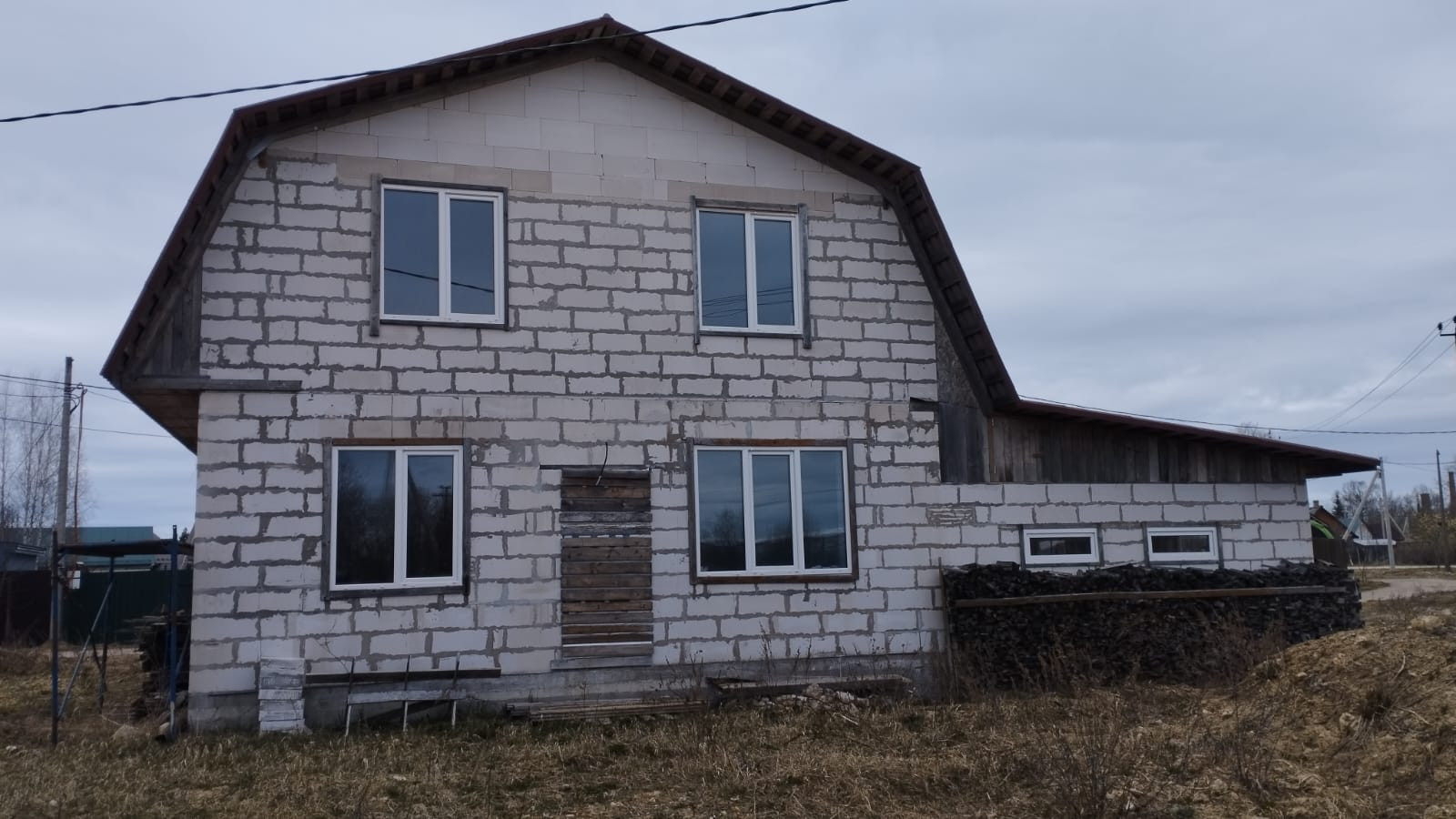 Дом 2022 г, внутреннюю отделку надо доделывать, 2 этажа, второй этаж распланирован, но без отделки, все проведено для санузла на втором этаже. Первый этаж УЖЕ ОБОРУДОВАН для проживания. Коммуникации в доме и на участке проведены (электричество, вода, канализация). Соседи только с одной стороны и через дорогу, с других сторон соседей нет.