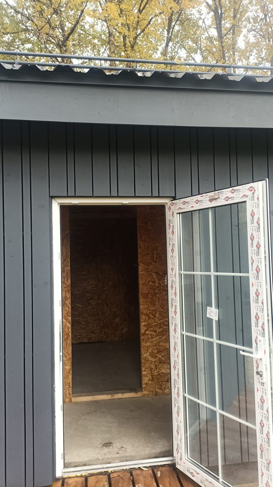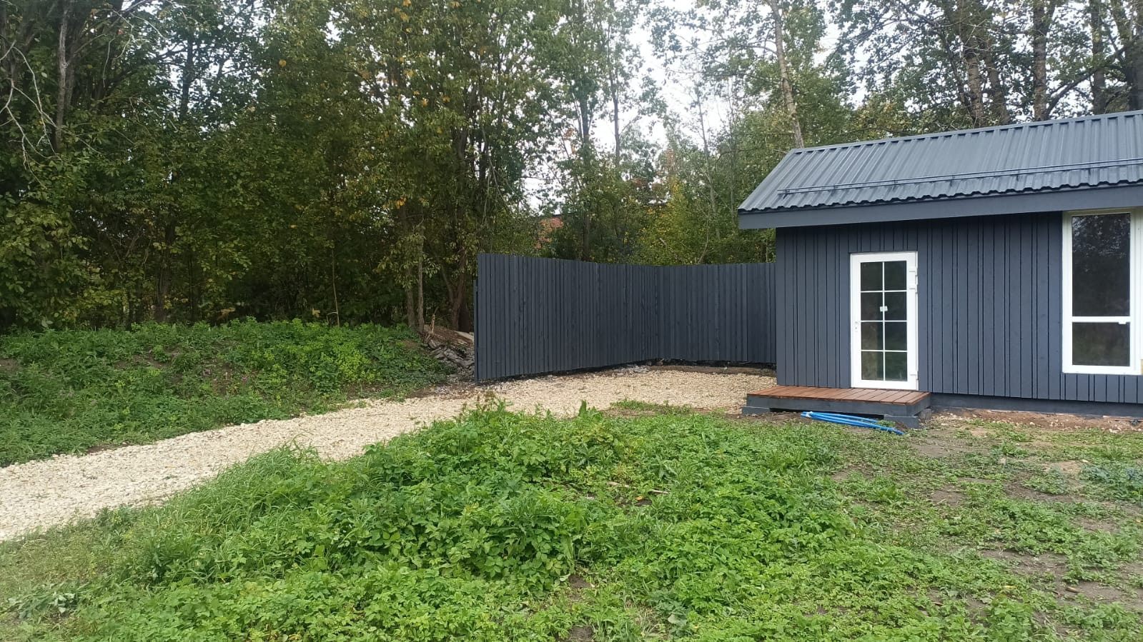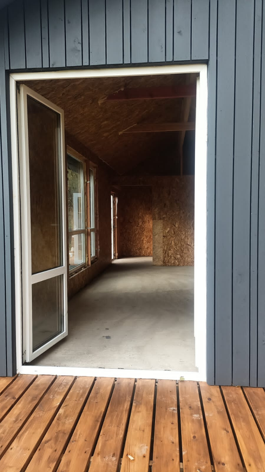 Дом 2023 года постройки, площадью 37,4 кв.м., каркасный, выполнен в скандинавском стиле. Дом стоит на фундаменте(плита), в доме сделана черновая отделка – зашит OSB плитами. Дом находиться на краю участка, построен по всем строительным нормам, поэтому есть возможность построить еще один дом большей площадью.