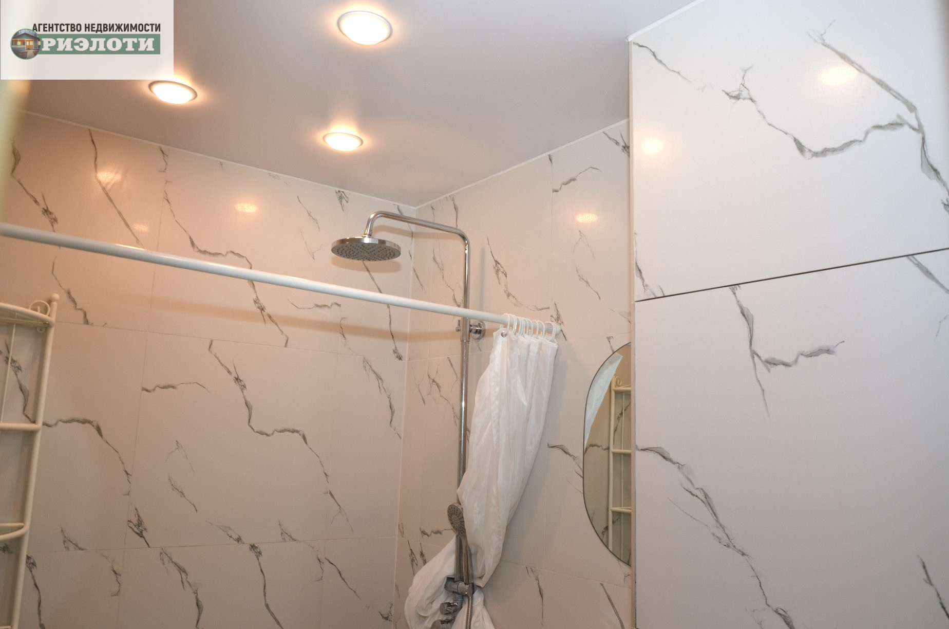 Потолки во всех комнатах натяжные (глянцевые, матовые), установлены светодиодные светильники.