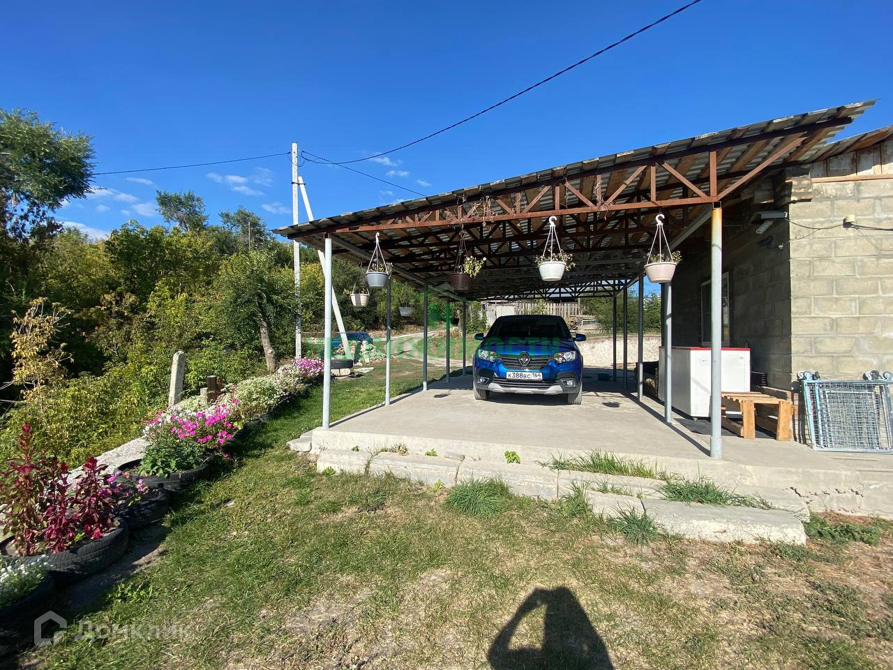 Имеется капитальный навес с бетонной площадкой.