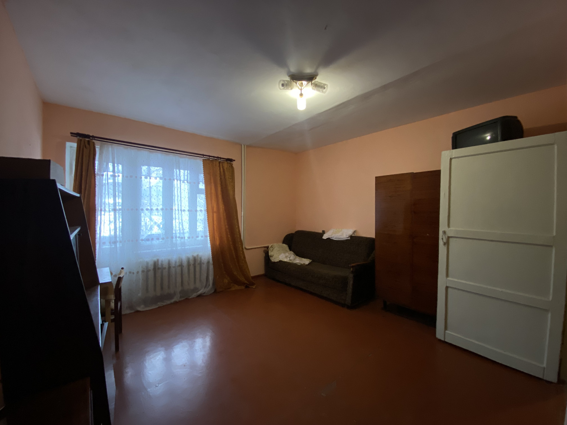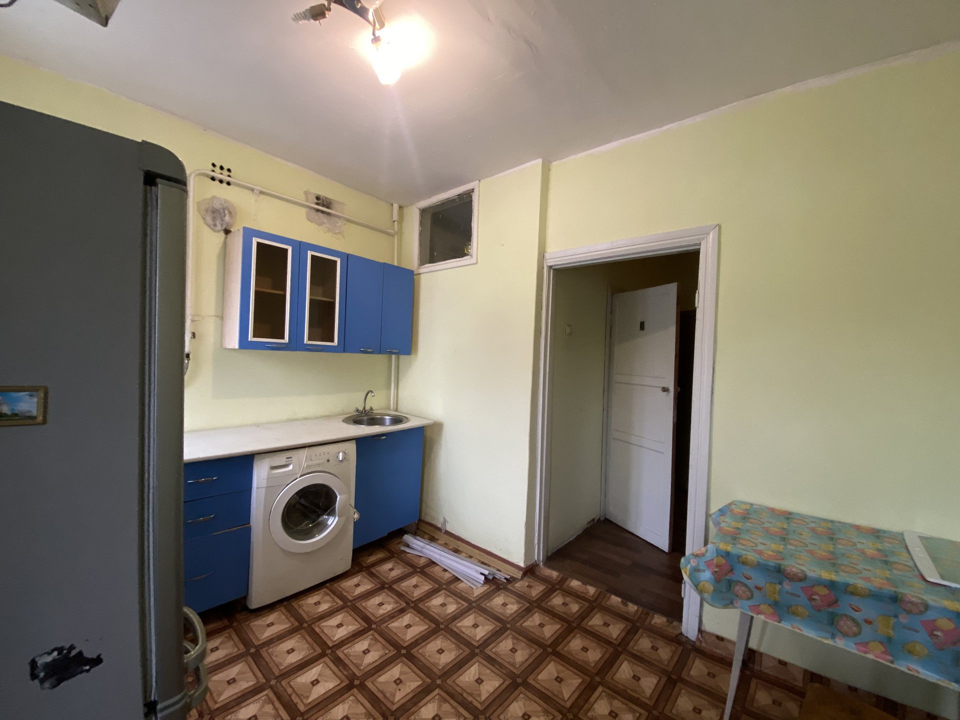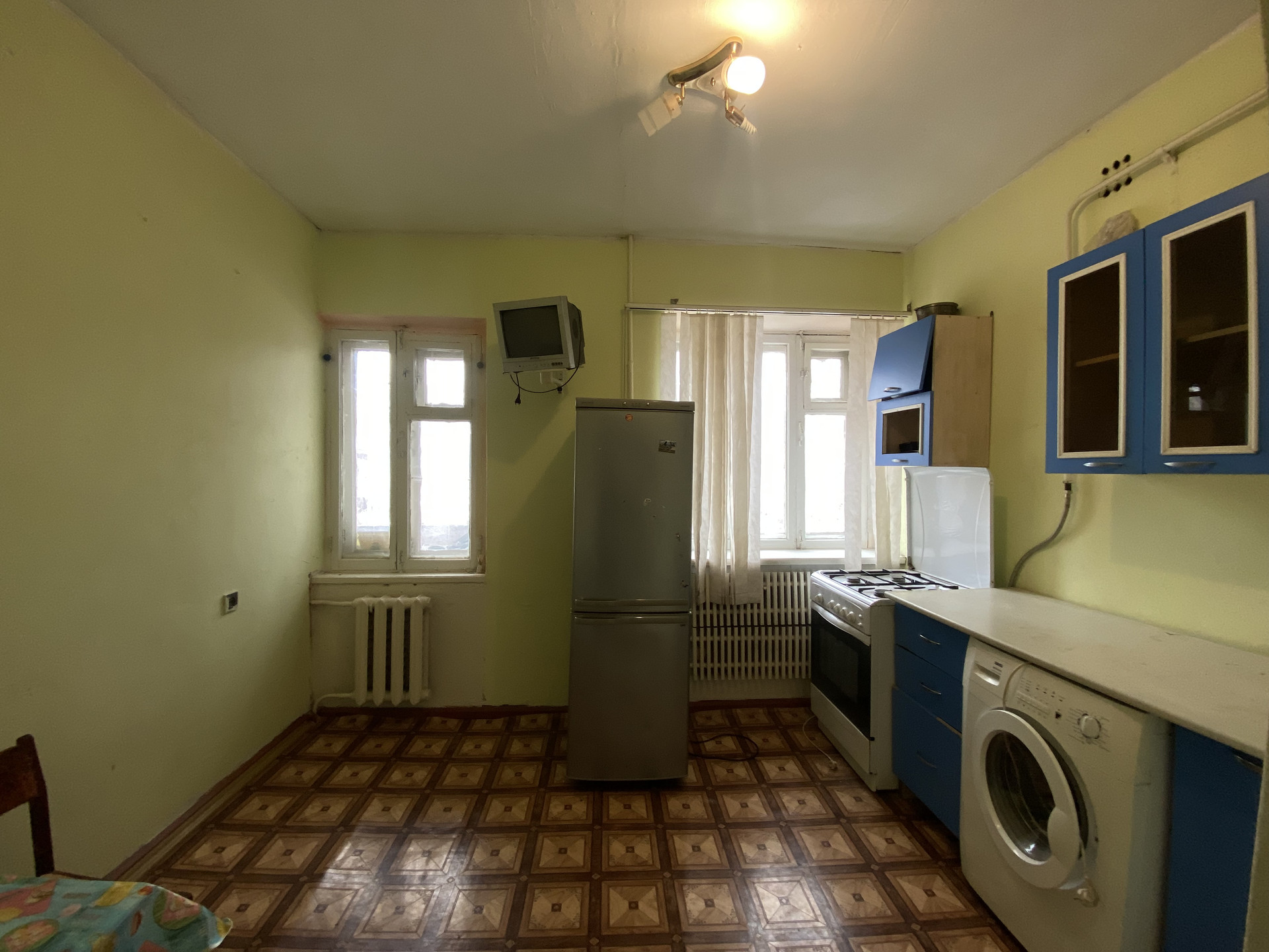 Квартира требует ремонта, окна деревянные,  есть большая  лоджия,