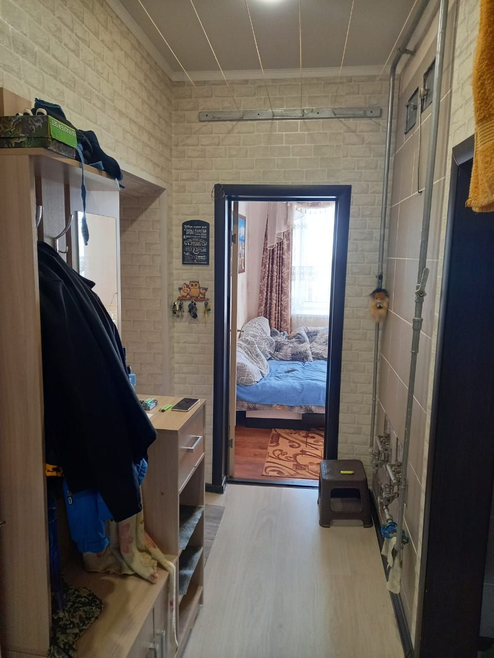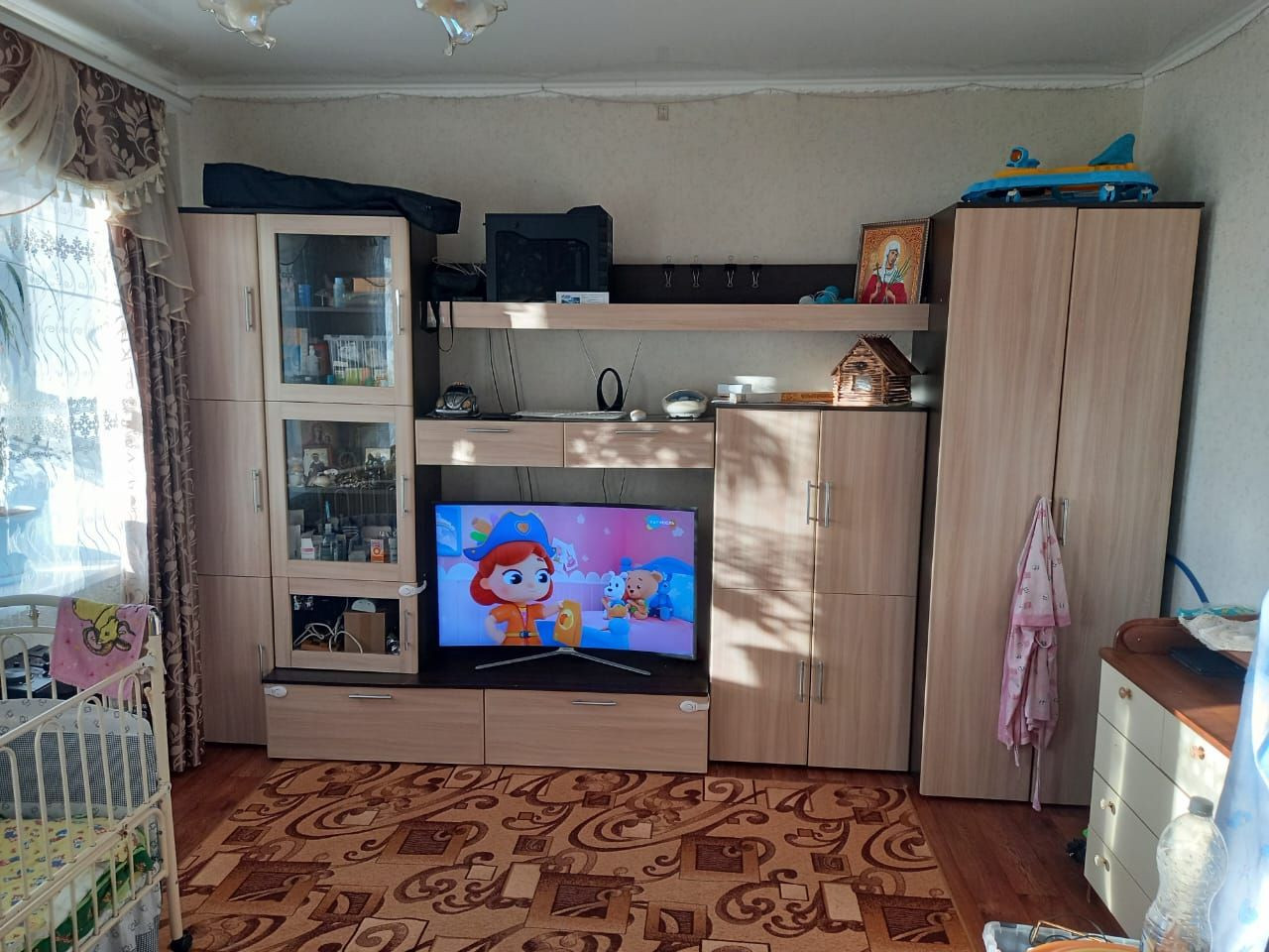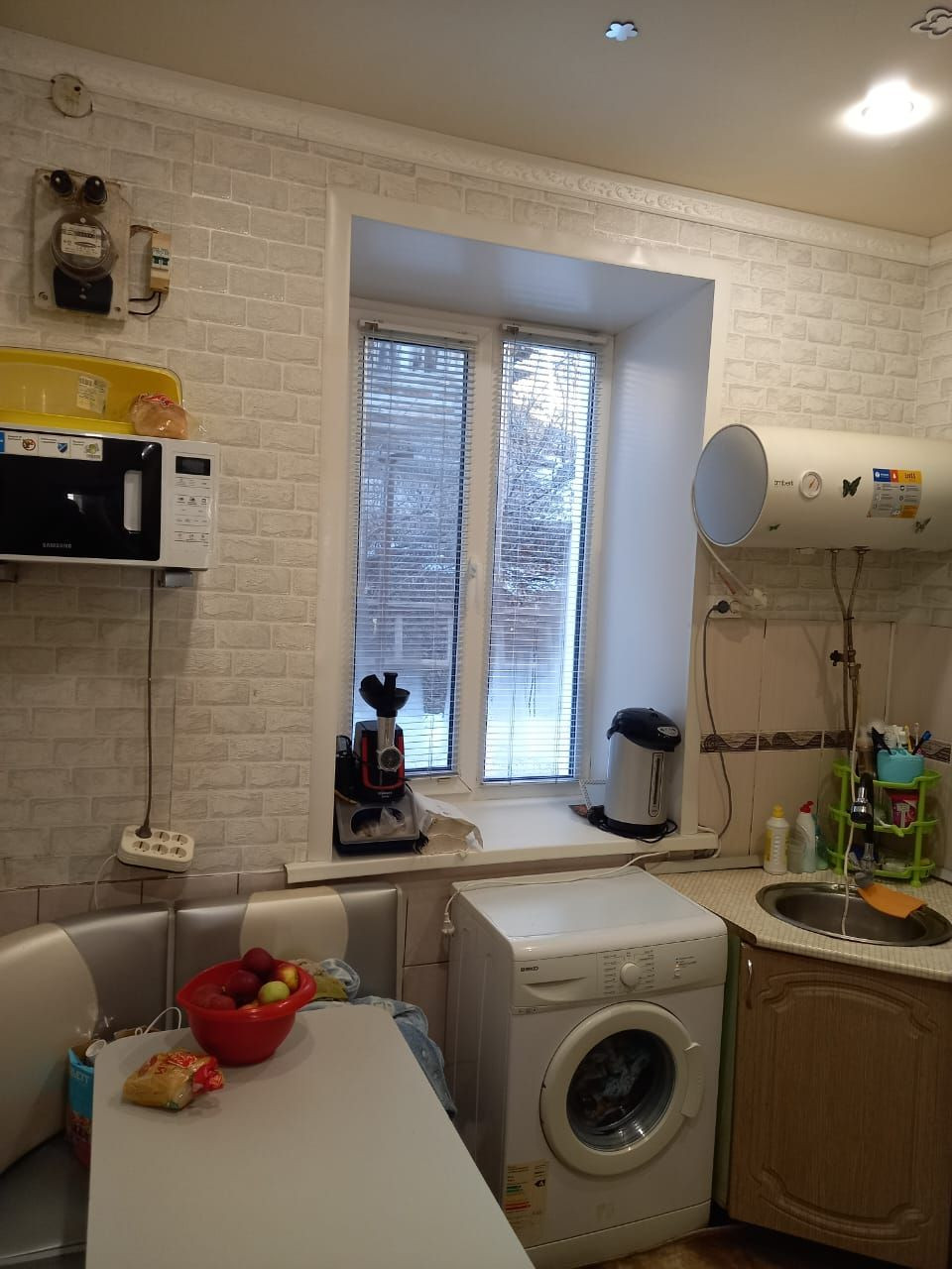 Квартира в хорошем состоянии, сделан ремонт - натяжные потолки везде, пластиковые окна с широкими подоконниками 80см, межкомнатные двери, на полу постелен ламинат, отопление печное (качественно обложено плиткой - очень тепло), входная дверь бульдорс. Кухня обложена кафелем, новая проводка, водонагреватель из нержавейки. Санузел совмещен, душ в кафеле, отдельный слив, новый пвх. Во дворе есть свой полисадник 5х3.5м, парковка освещаемая. Подъезд круглый год. Кухня остается новым владельцам.
