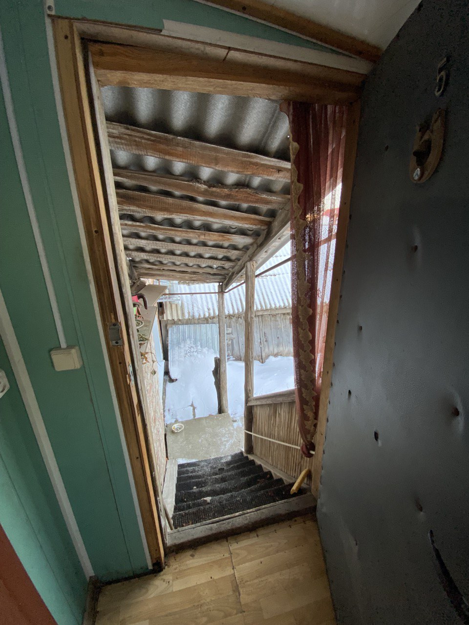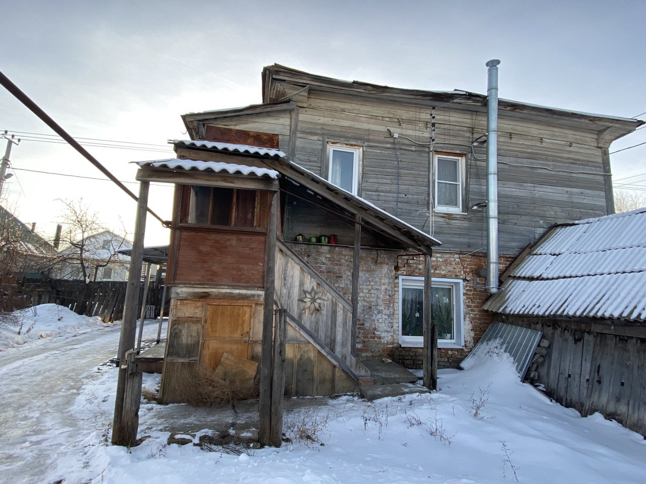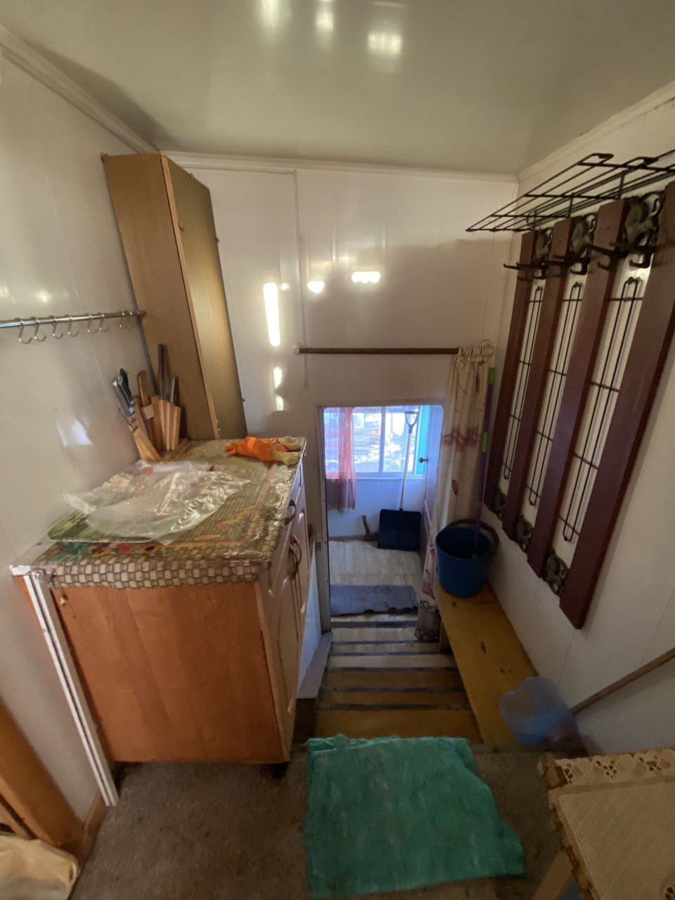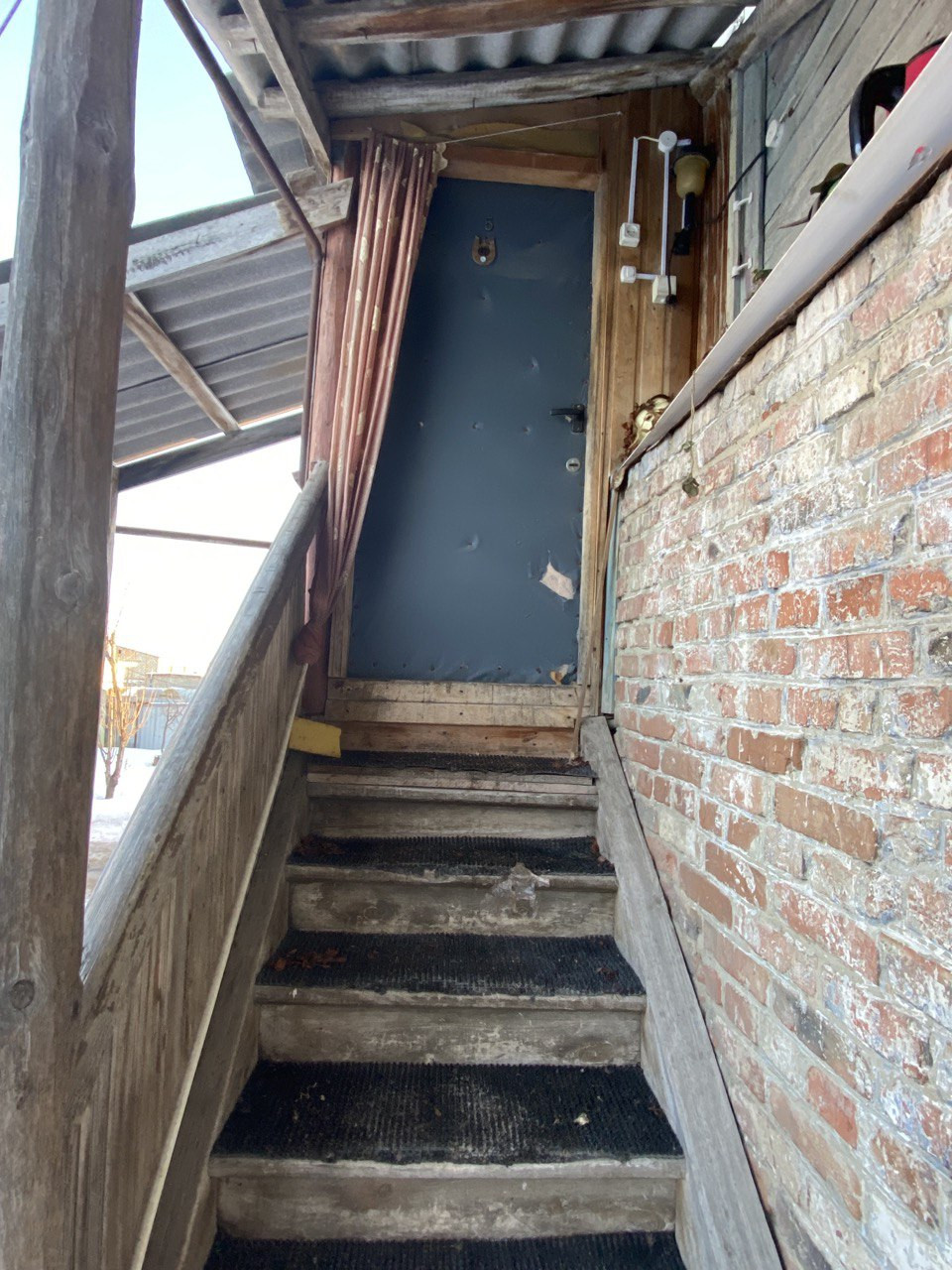 Под крыльцом комната для хранения садового инвентаря, инструментов. Есть сарай с погребом.