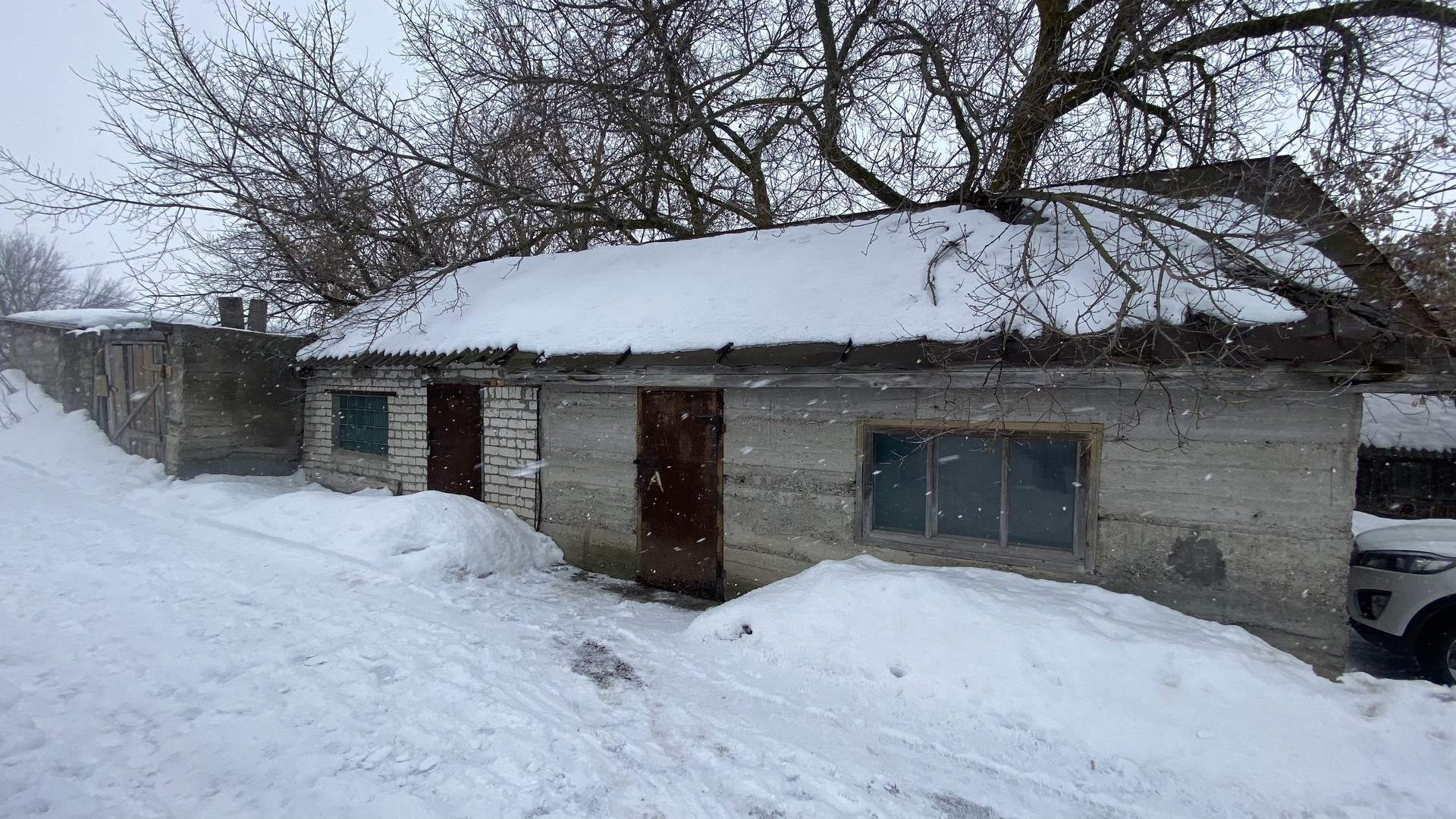 Перед домом расположен кирпичный гараж под машину и кирпичное хозяйственное строение!