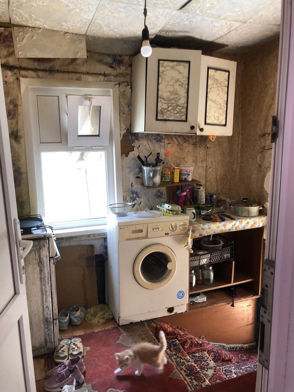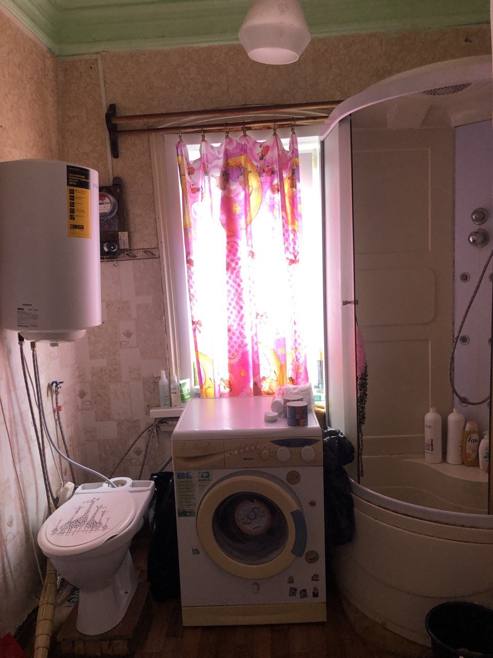 Квартира в хорошем состоянии, установлены пластиковые окна, высокие  потолки, санузел совмещенный ( установлена душевая кабина), заменены трубы, установлены счетчики.