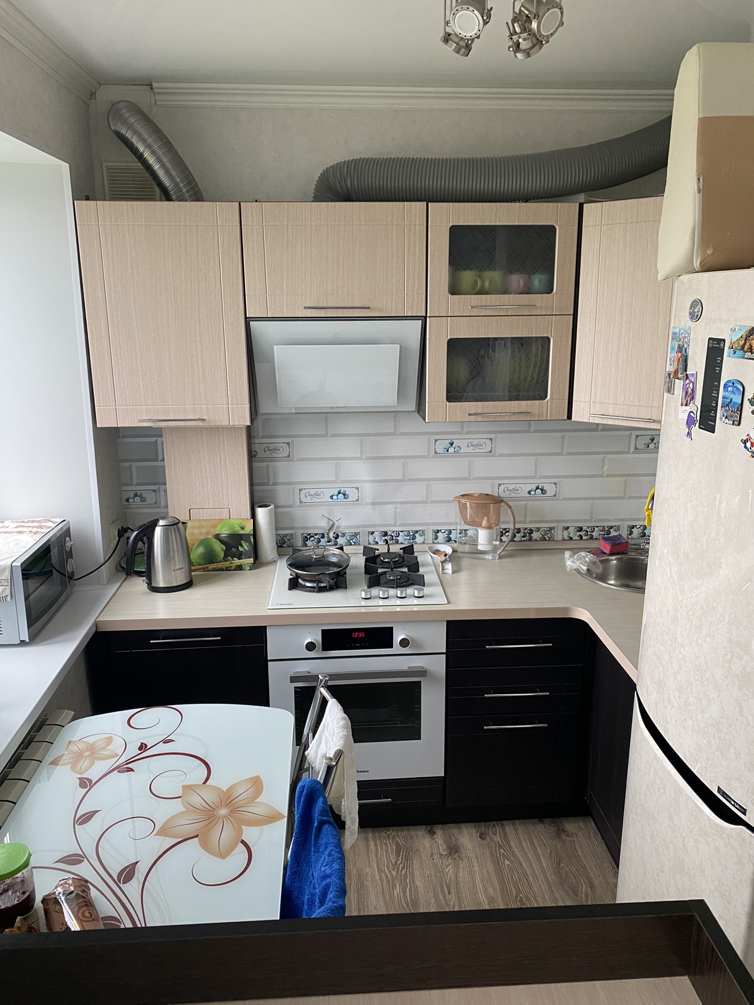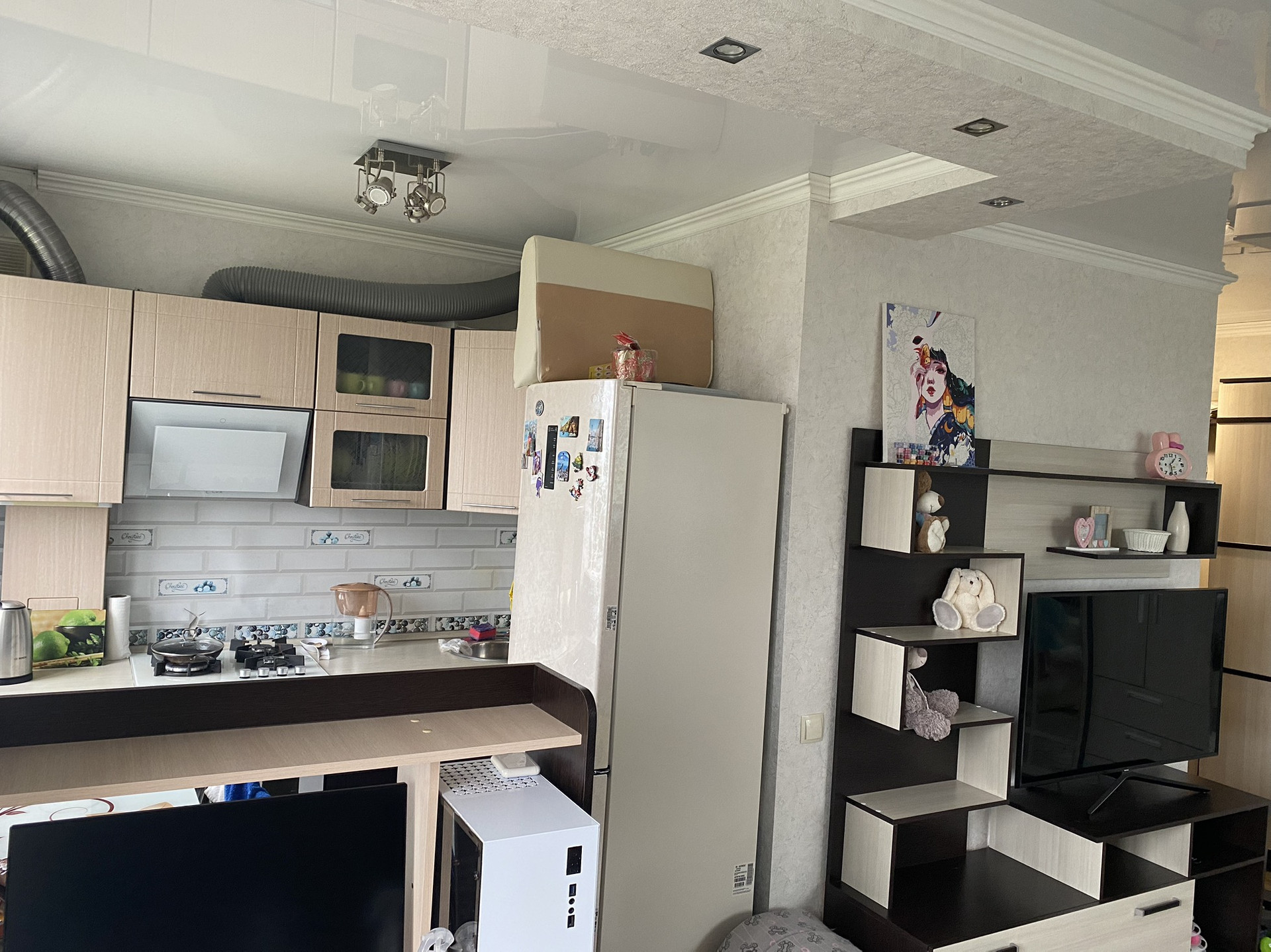 В квартире остается вся мебель и бытовая техника на кухне (холодильник, варочная панель, духовой шкаф, вытяжка).