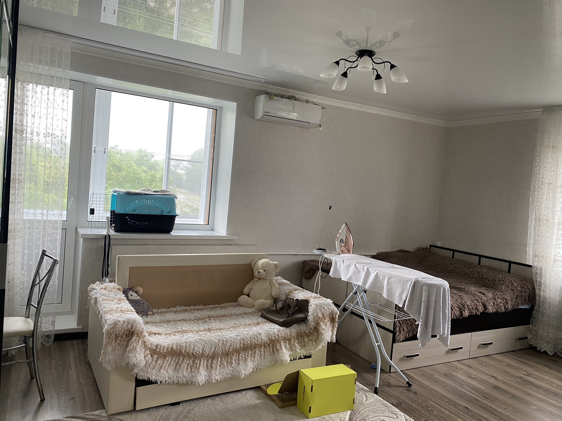 Имеется газовая колонка, сплит система, счетчики на свет и воду.