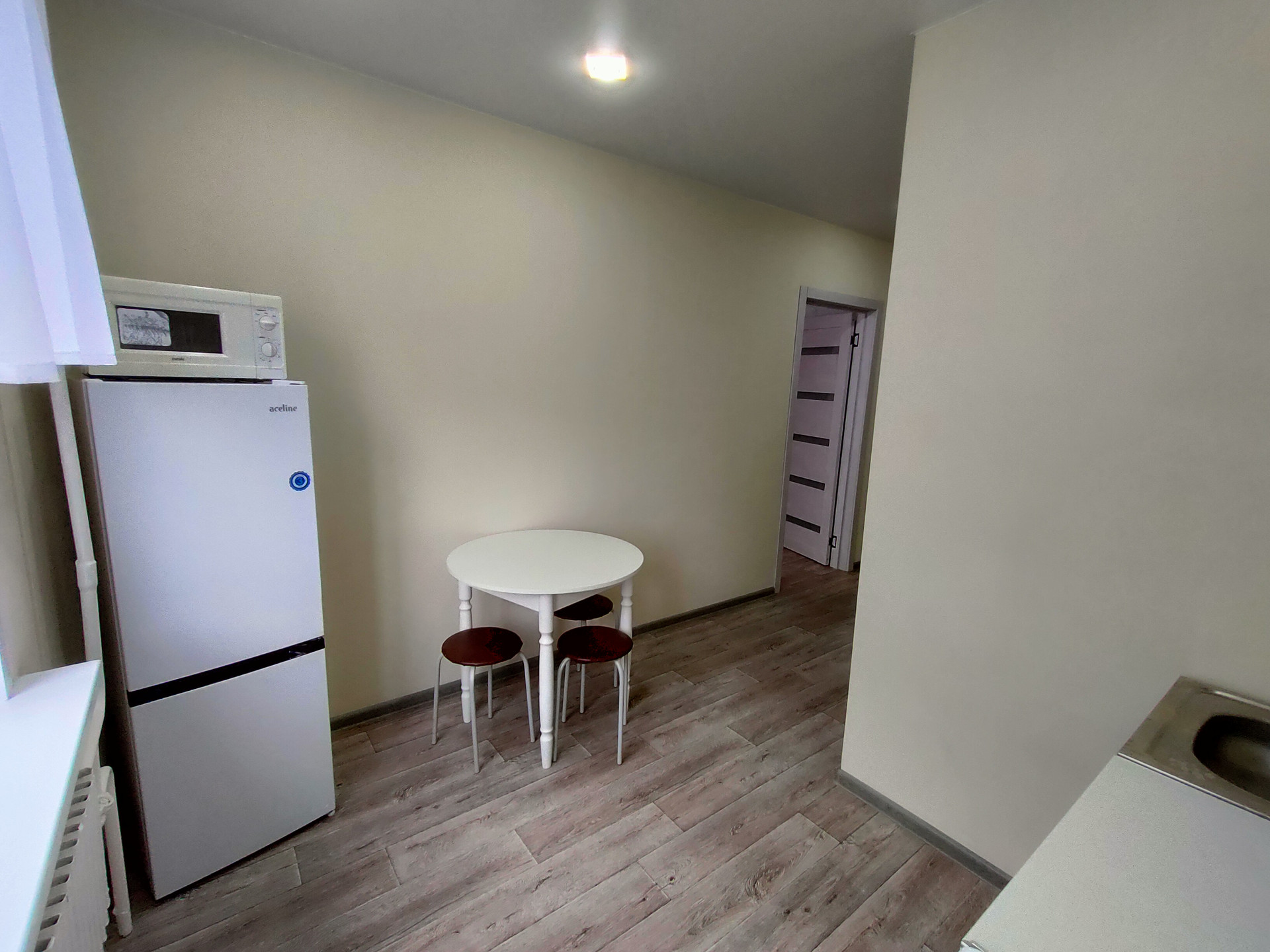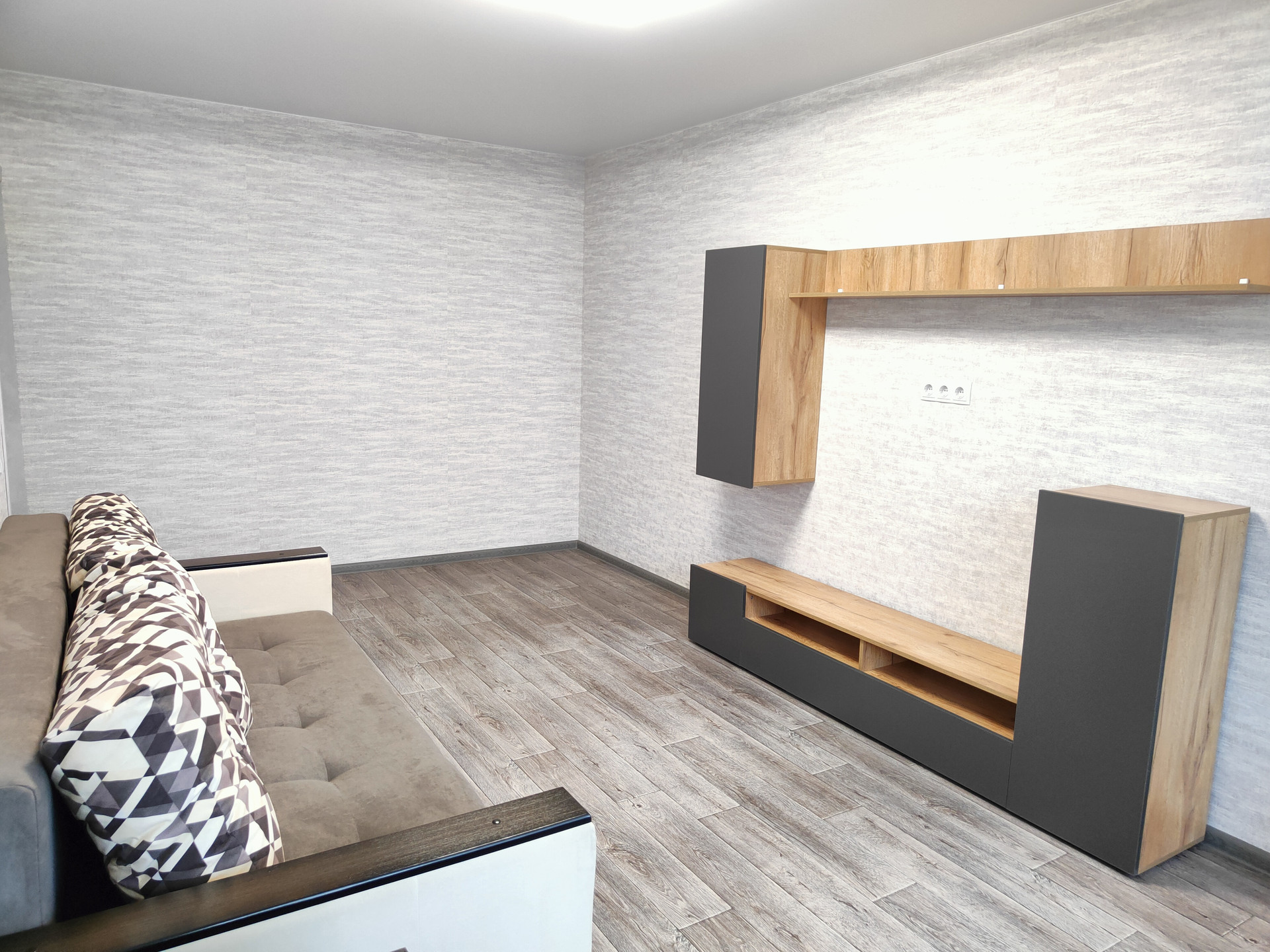 В квартире выполнен капитальный ремонт, выровнены пол и стены, новый линолеум, свежие обои, натяжные потолки, кафельная плитка в санузле, остеклёный балкон.