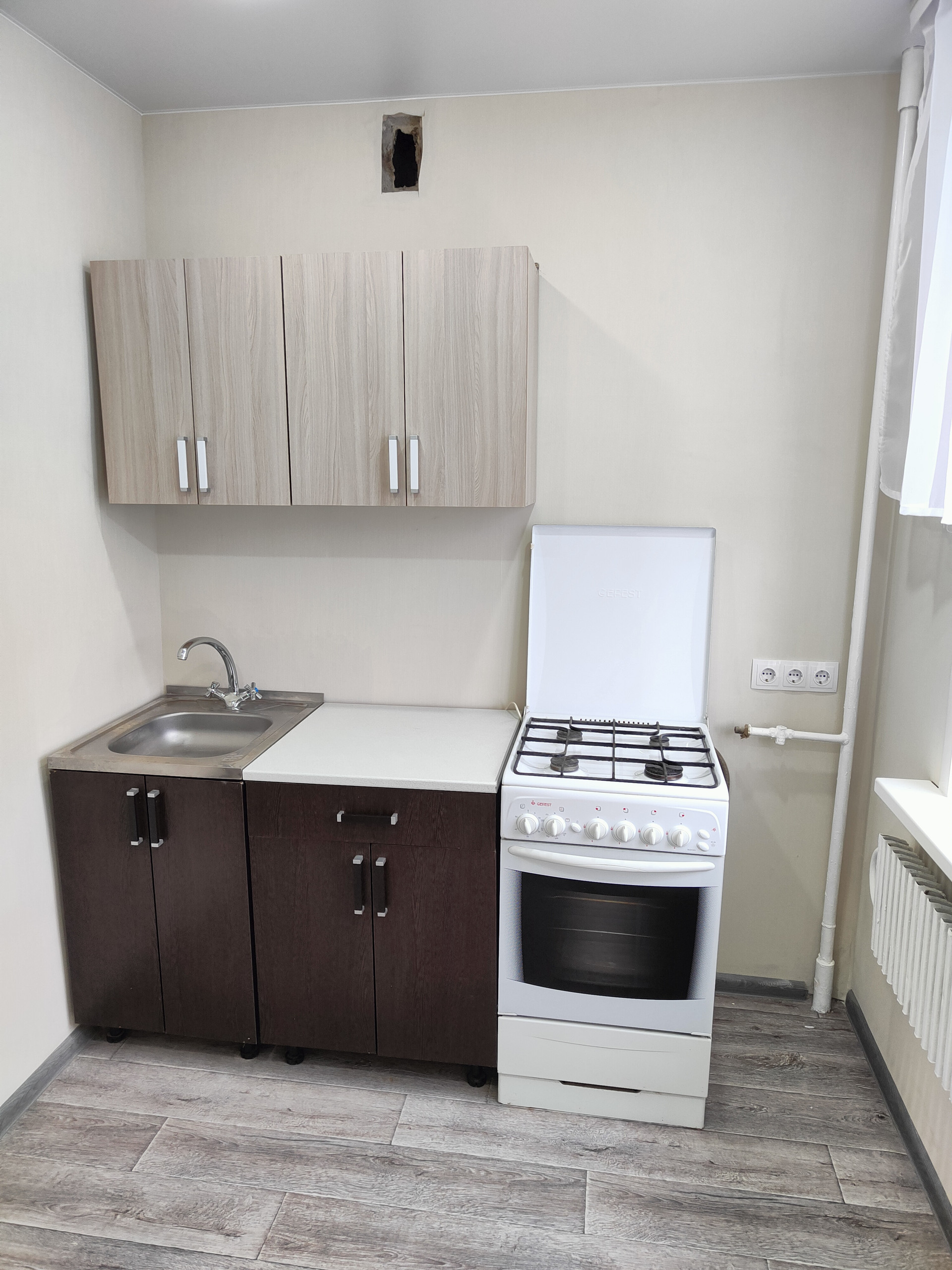 Из мебели и бытовой техники остаются кухонный гарнитур, газовая плита, холодильник, микроволновая печь; в санузле: стиральная машина, водонагреватель. В зале и спальной установлены люстры с разными режимами освещения.
