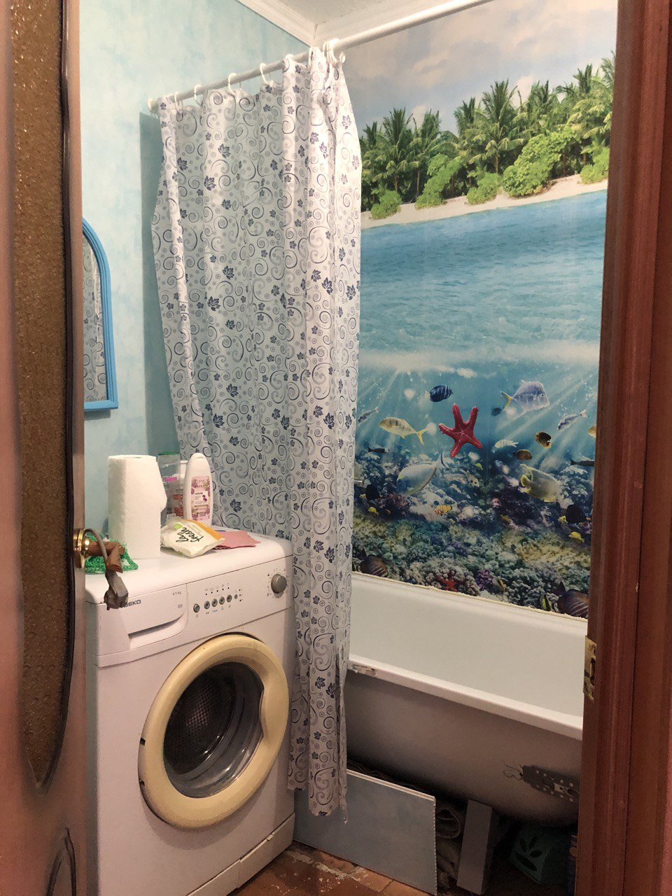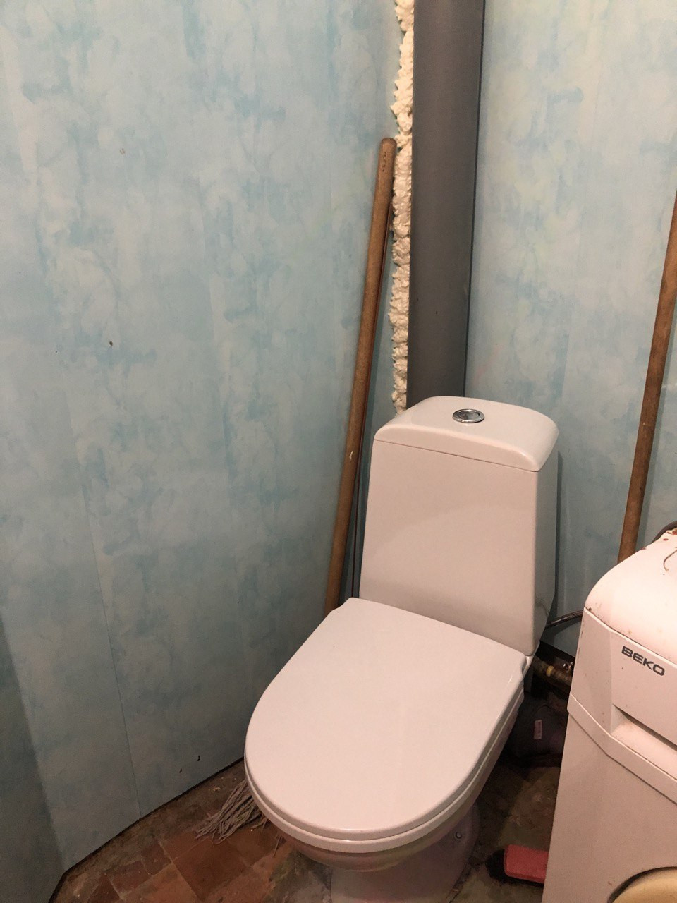 Совмещенный санузел. Заменен канализационный стояк, водопроводные  трубы, установлены счетчики.