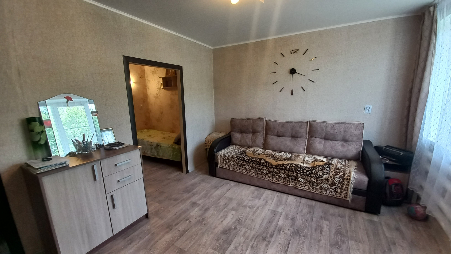 Продается 1 к кв., площадью 32,9 кв.м., расположена на 2/5 кирпичного дома, не угловая. Комната большая, разделена на две комнаты. Потолки натяжные, окна пластиковые, сделан ремонт в квартире. Продажа вместе с мебелью. Хороший вид из окна. Рядом вся инфраструктура: магазины, садик, педучилище. Небольшой торг.