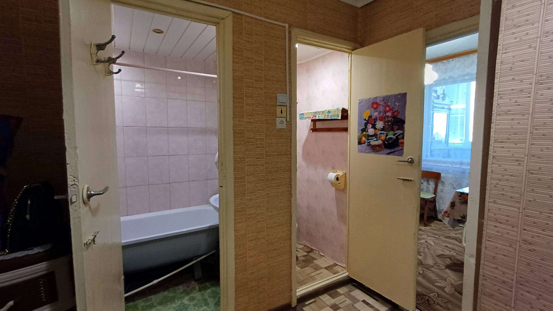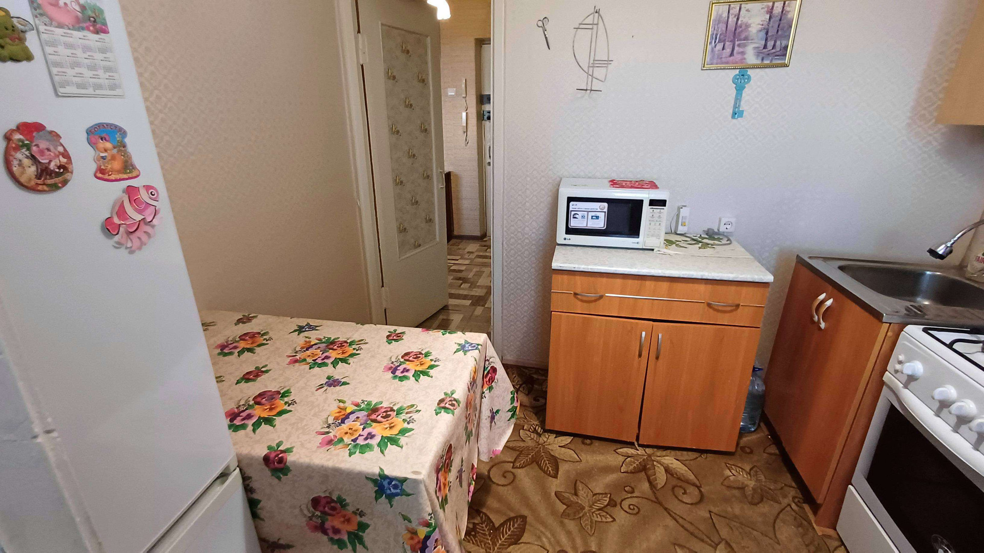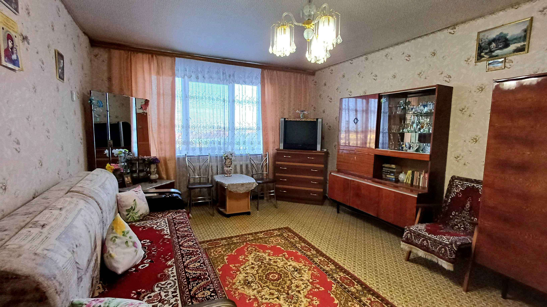 Кирпичный дом, тёплый, с домофоном на входе в подъезд и на этаже. В квартире чисто, но требуется небольшой косметический ремонт. На полу линолеум, в комнате пластиковое окно, на кухне – деревянное. Соседи хорошие и спокойные.