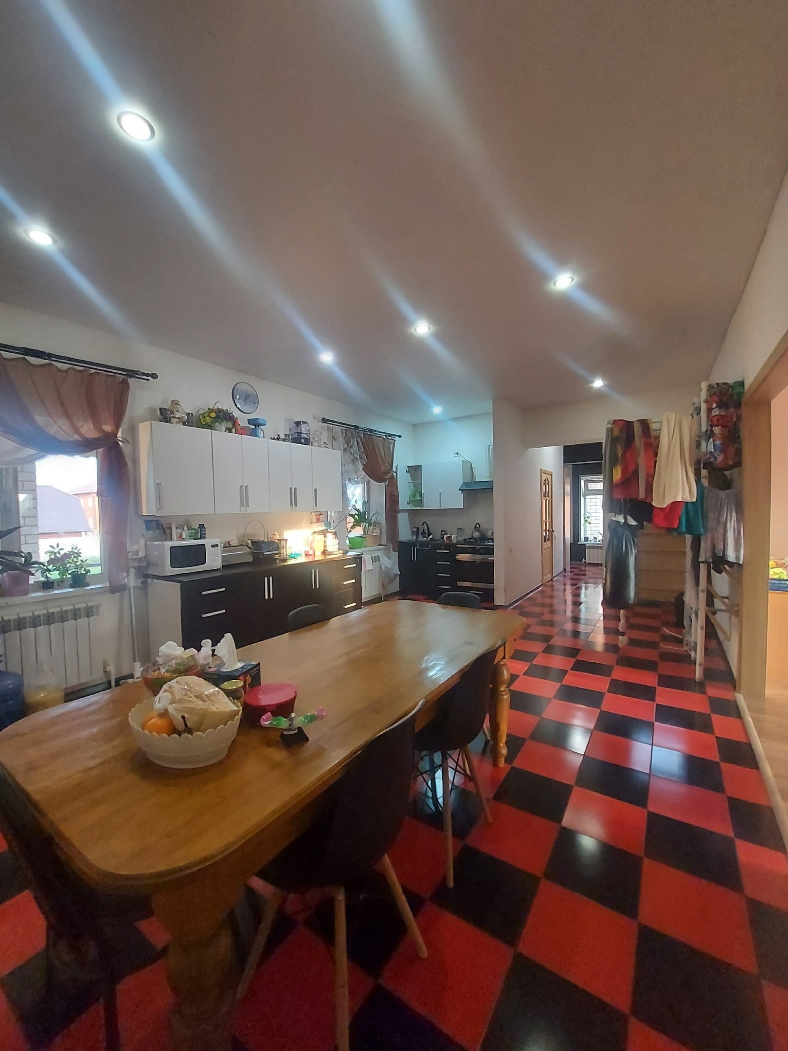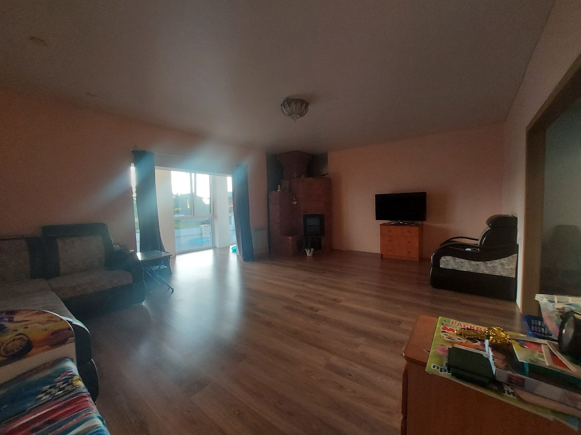 В шикарном месте, не далеко от воды расположен дом вашей мечты! 2013 года постройки, На 1 - ом этаже : прихожая 11,5кв.м., санузел 4,0кв.м., служебное помещение свободного назначения (планировали делать бассейн) 27,0кв.м., жилая комната 42,6кв.м., столовая 26,8кв.м. В прихожей и столовой на полу выложена плитка, теплый пол, в комнате ламинат. Натяжной потолок. Застекленный балкон с панорамными окнами и прекрасным видом.