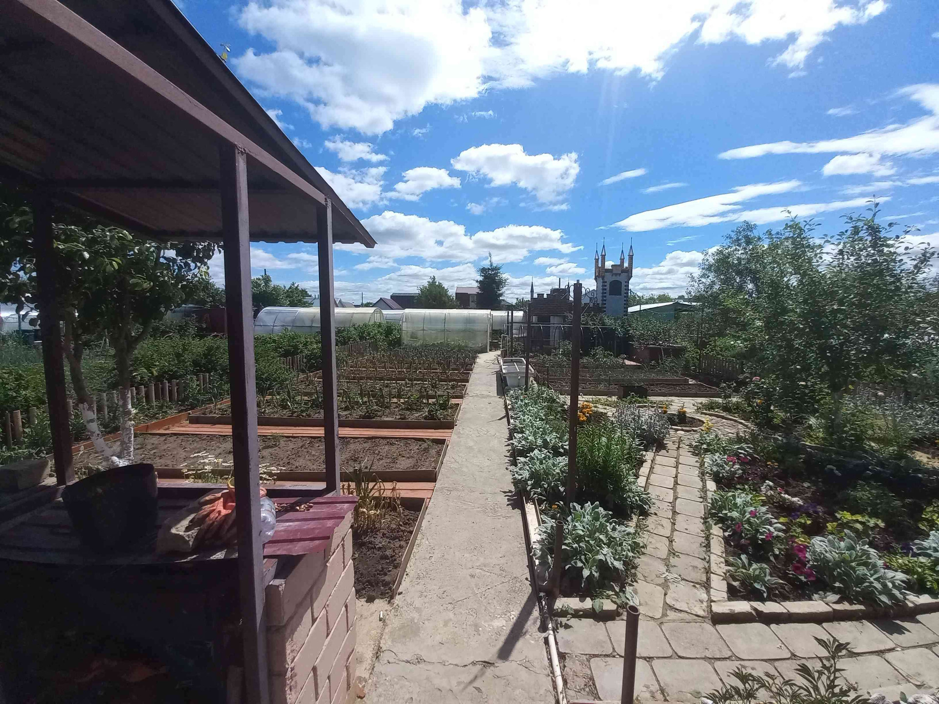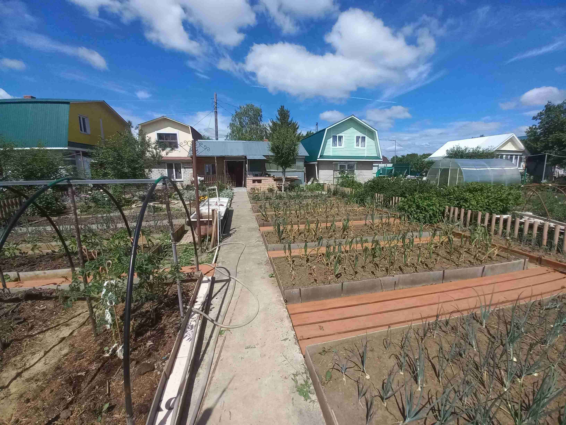 Дача в отличном состоянии, ухоженная с дорожками из брусчатки, с грядками и плодоносящими деревьями и кустарниками, есть теплицы из поликарбоната, есть сарайки кирпичные для разведения кур, есть терасса, беседка и т.д.