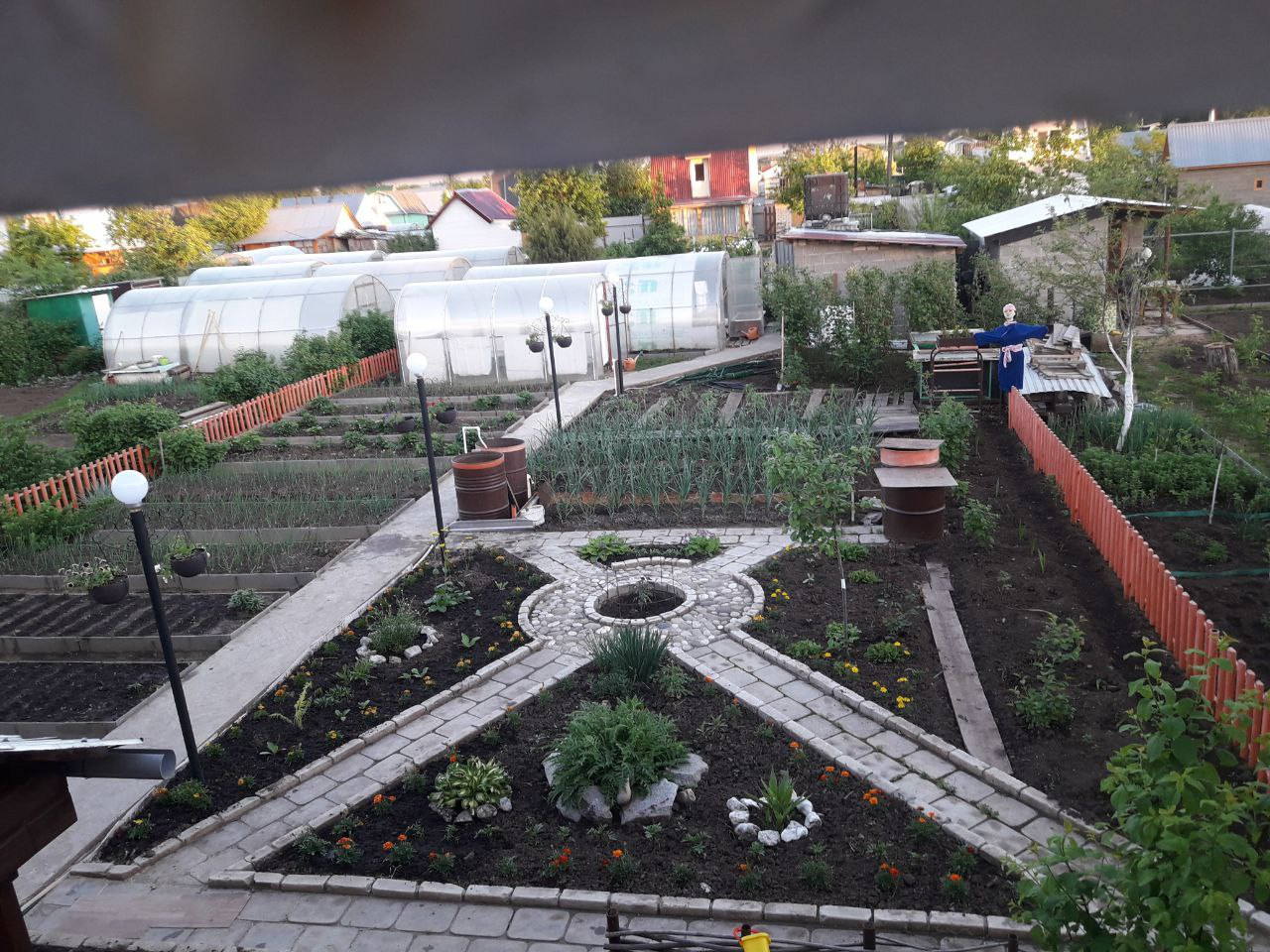 Есть свой крытый двор под крышей.