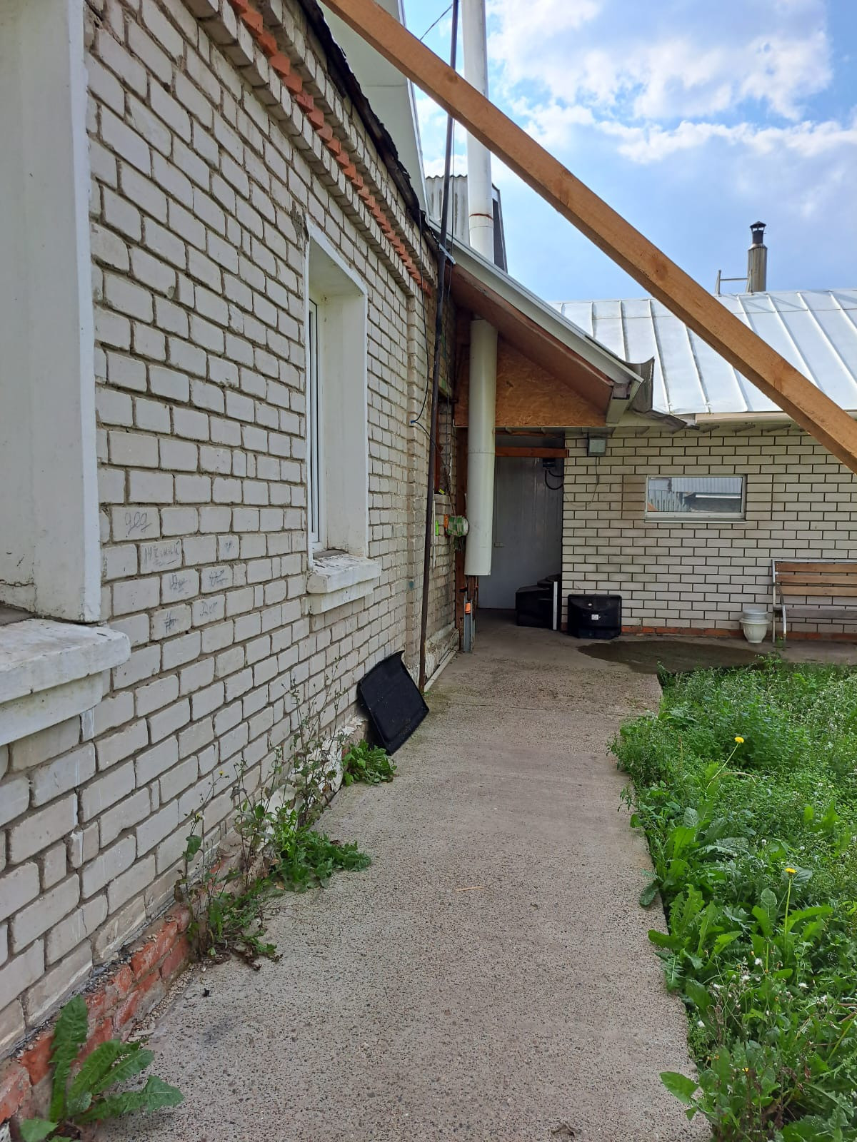 Кирпичный дом, вода централизованная. Имеется большой гараж, баня. Ухоженный огород.остановка и магазины в шаговой доступности.