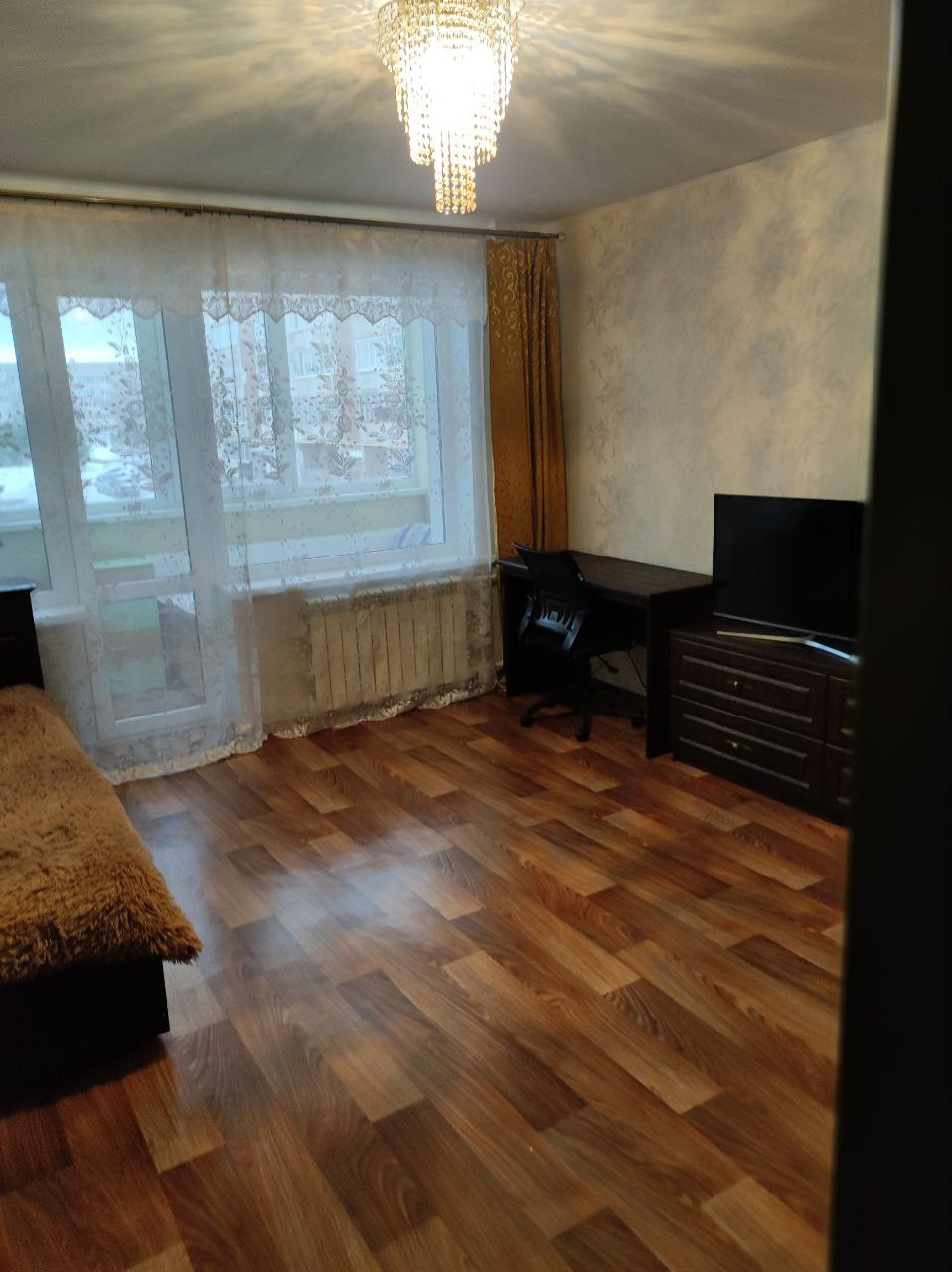Квартира в тихом экологически чистом месте, рядом лес. Очень теплая. Окна широкие.