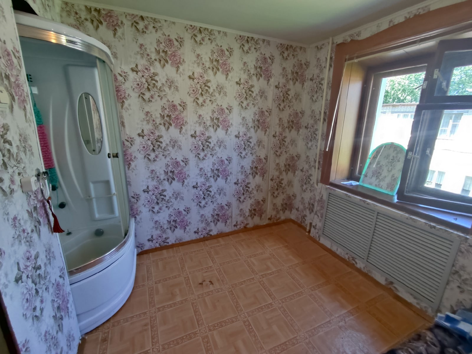в комнате стоит душевая кабина, унитаз отдельно, чистый коридор