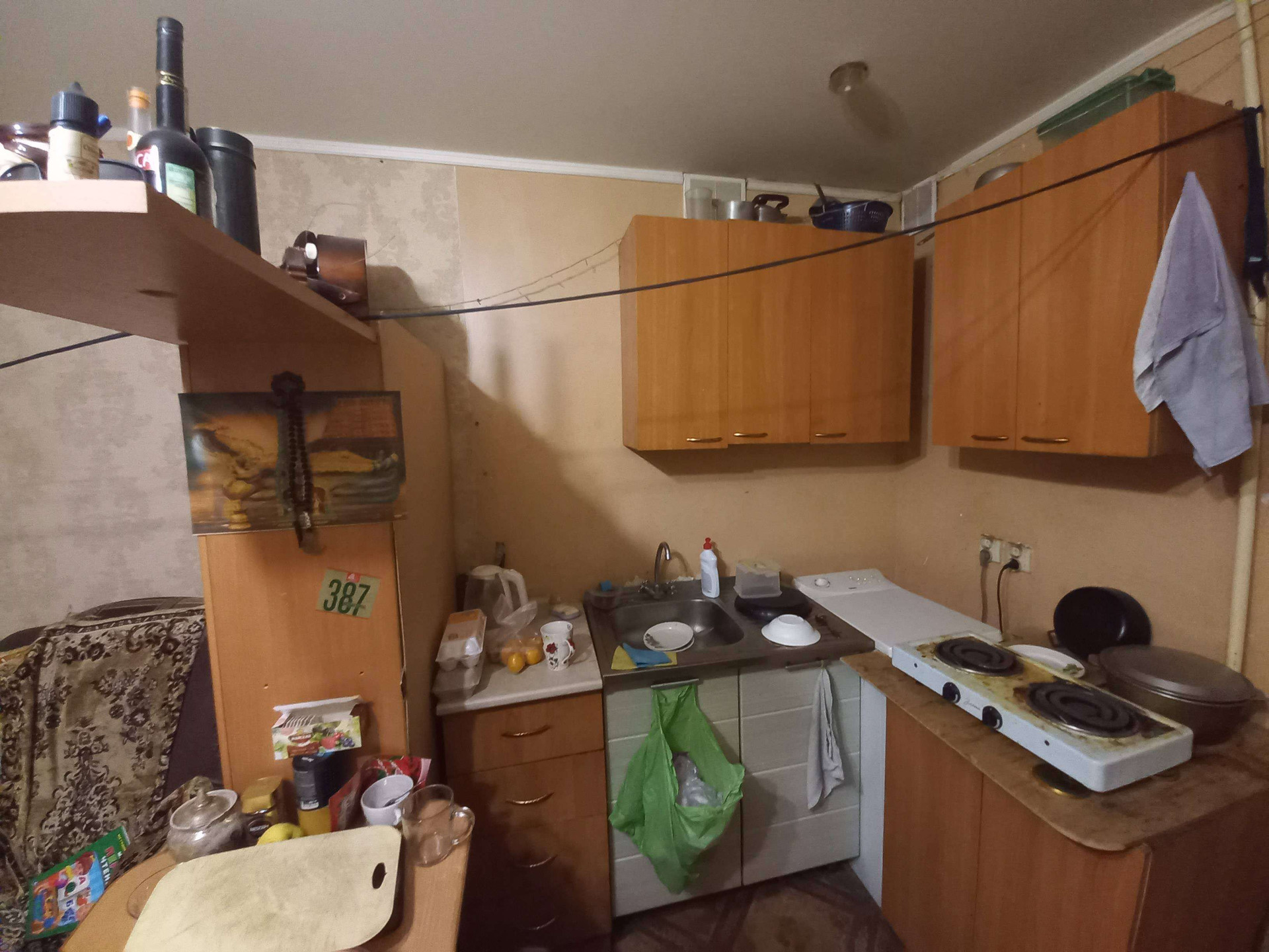 Окно деревянное, есть туалет, можно сделать душевую кабину. В квартире есть централизованная  горячая и холодная вода, установлена электроплитка. Есть свой  тамбур который закрывается на ключ. Хорошие соседи.