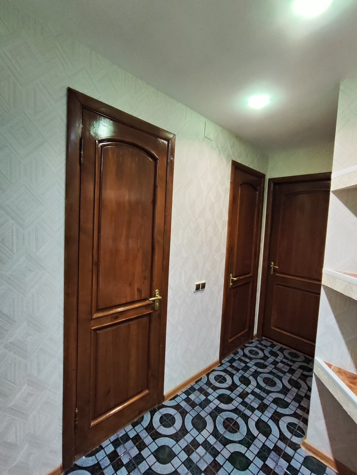 В прихожей на полу плитка, в зале и спальной комнате - ламинат, кухня – линолеум. Просторный раздельный санузел в кафеле.